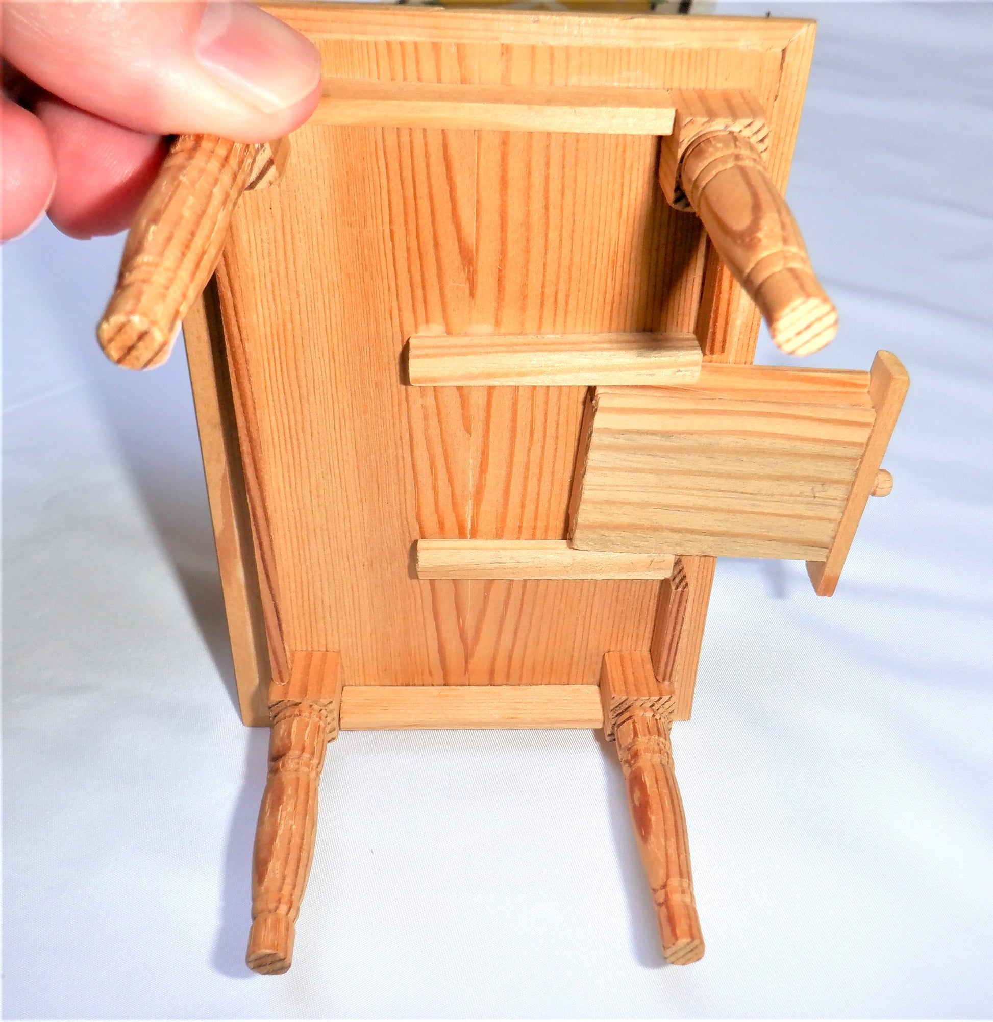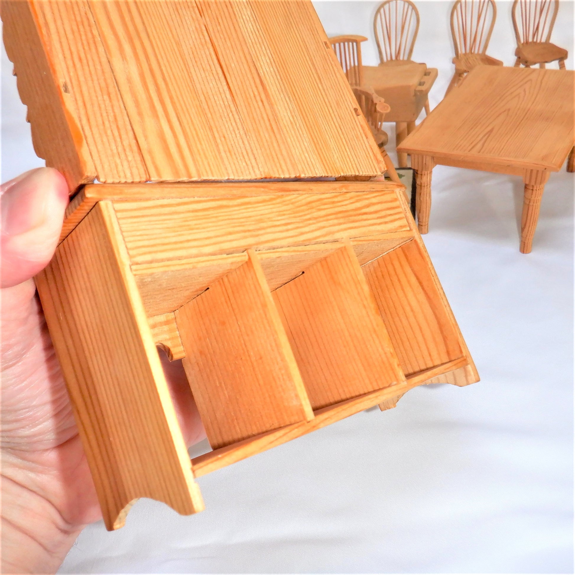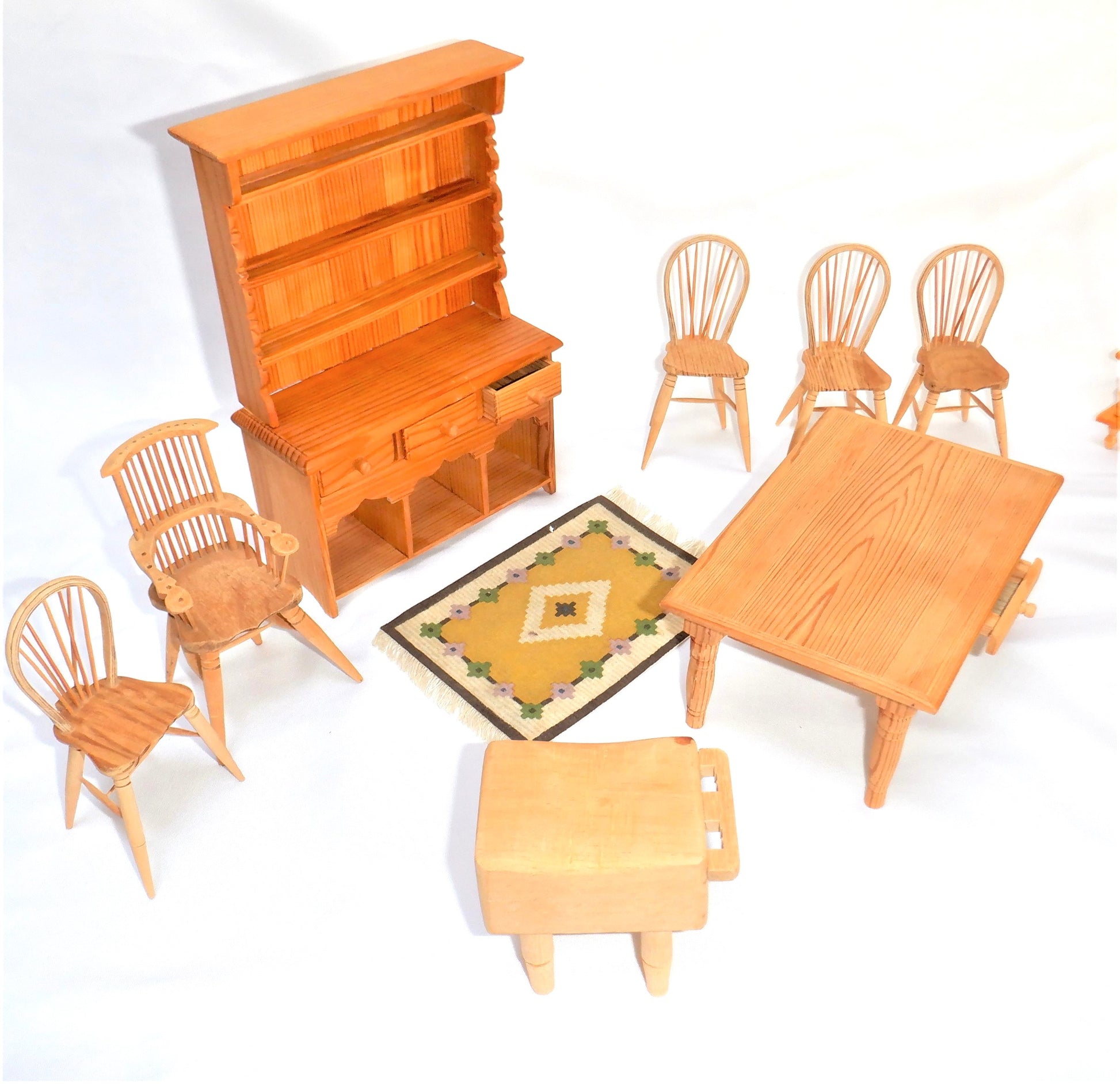 11-Pc Country Kitchen Pine Doll House Miniature Furniture Set, CANADIAN HAND-MADE & ARTIST SIGNED 1970's