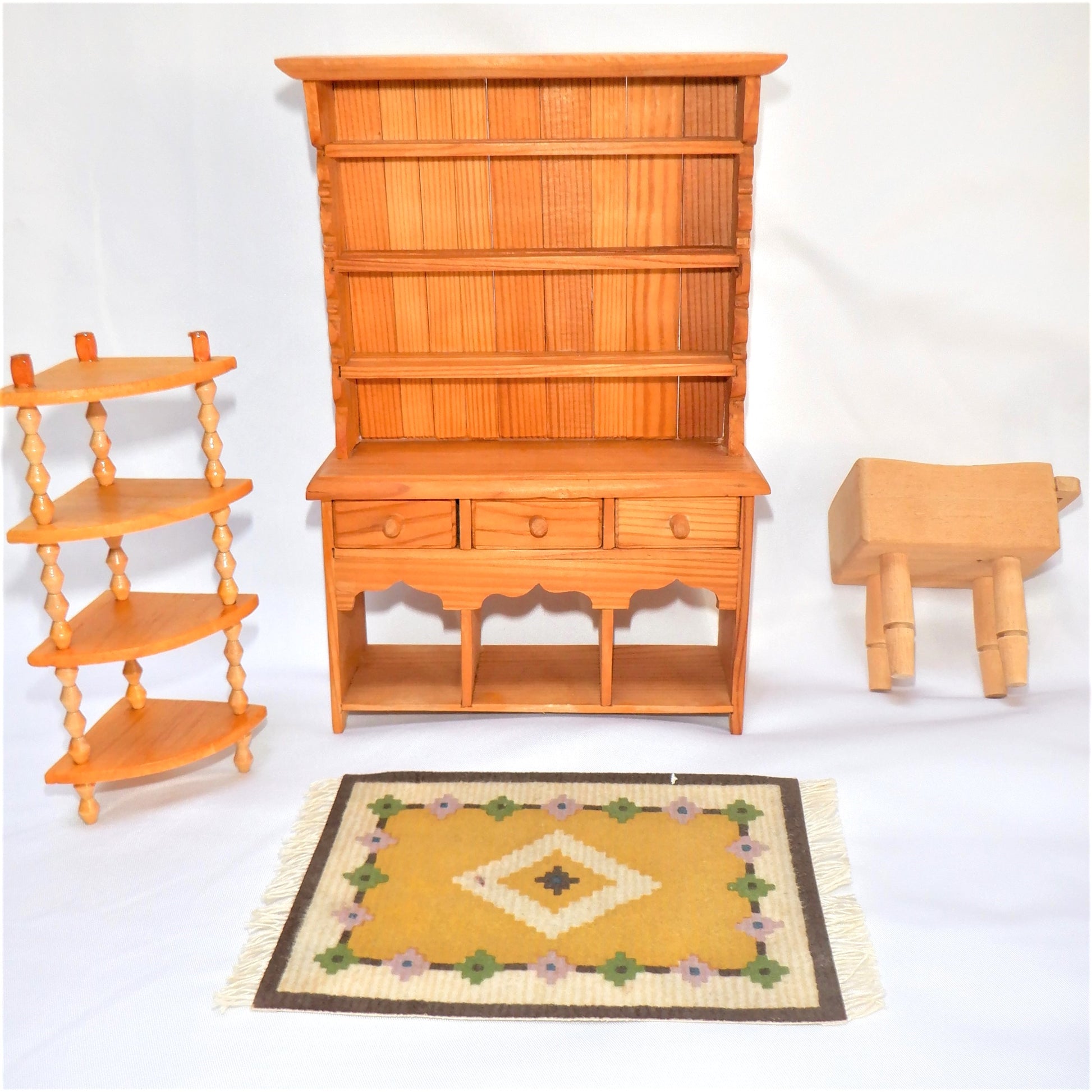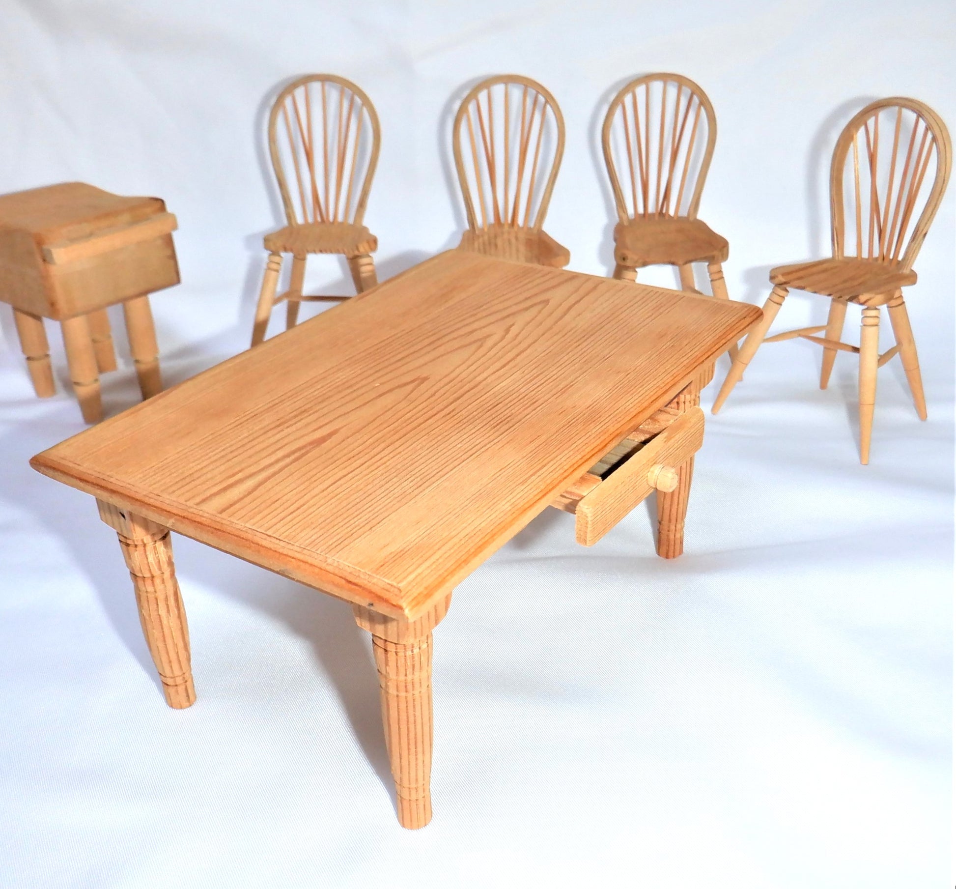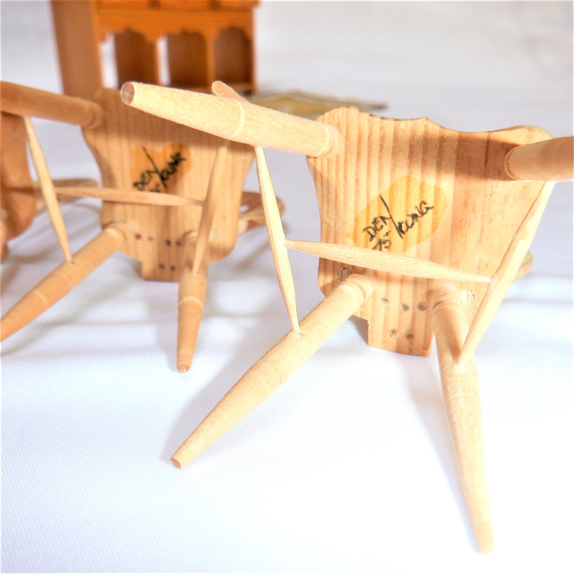 11-Pc Country Kitchen Pine Doll House Miniature Furniture Set, CANADIAN HAND-MADE & ARTIST SIGNED 1970's