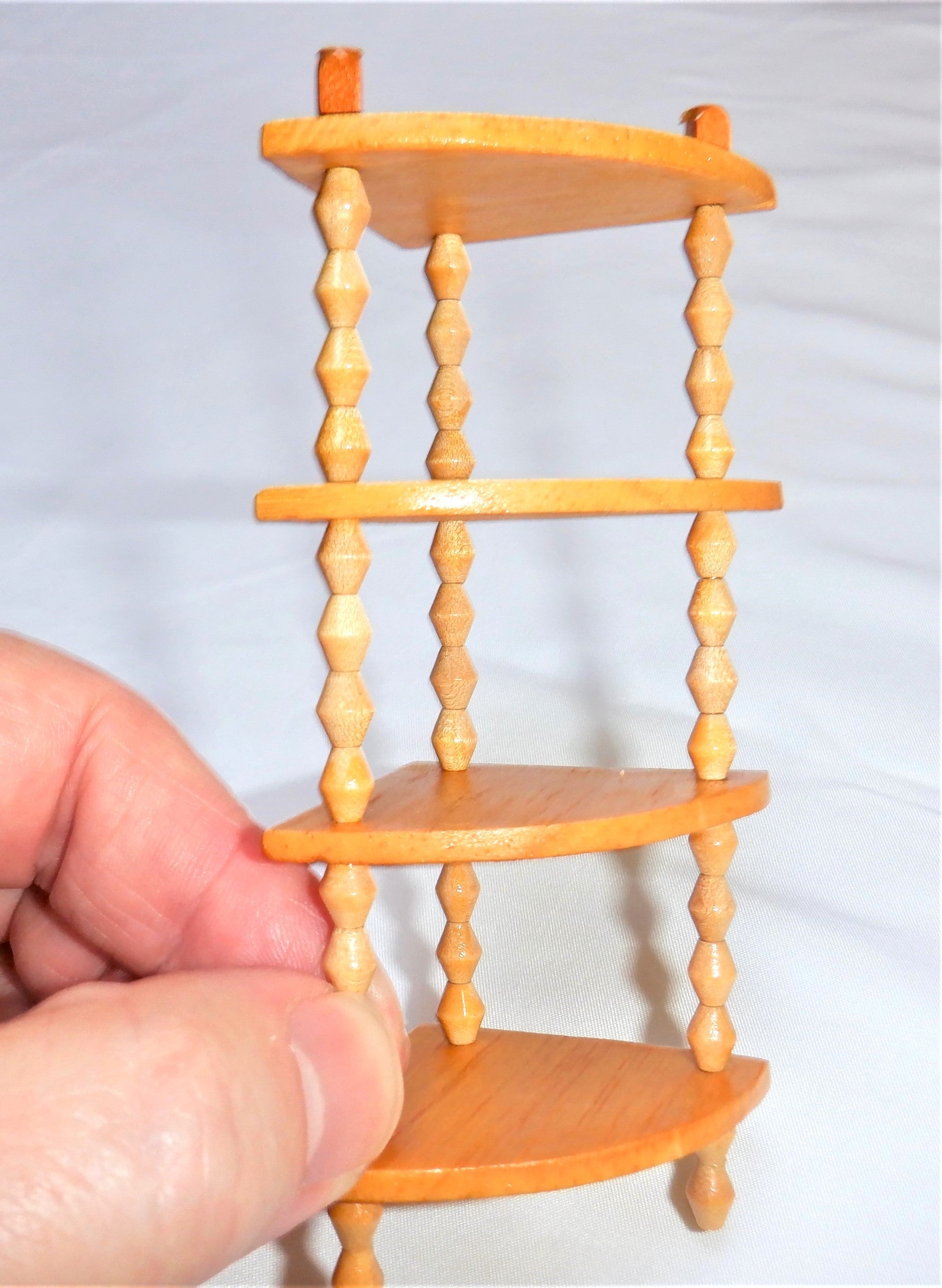 - Corner CURIO STAND: Size 1.75d x 4.75 inch tall, w/four shelves.