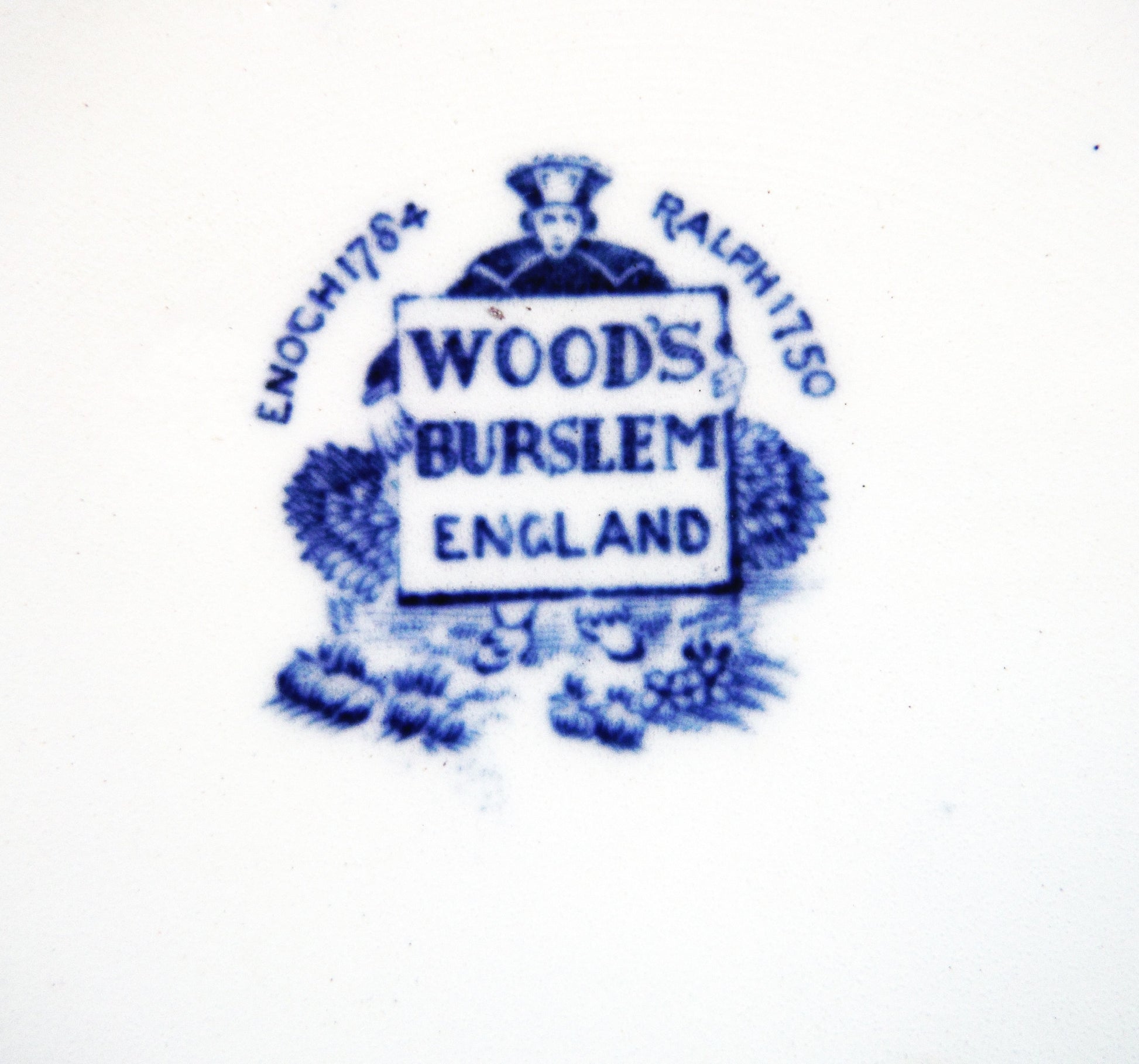 The outer rim features each month's calendar. The top of the plate displays the year, 1931. The inner circle features a serene country scene of a cow, gentle river, and a castle on the far away hill. The lower rim was gold imprinted, "Compliments Dion Bros. of Cut Knife, Sask." The underside displays the Woods Burslem of England factory logo. Made in England.