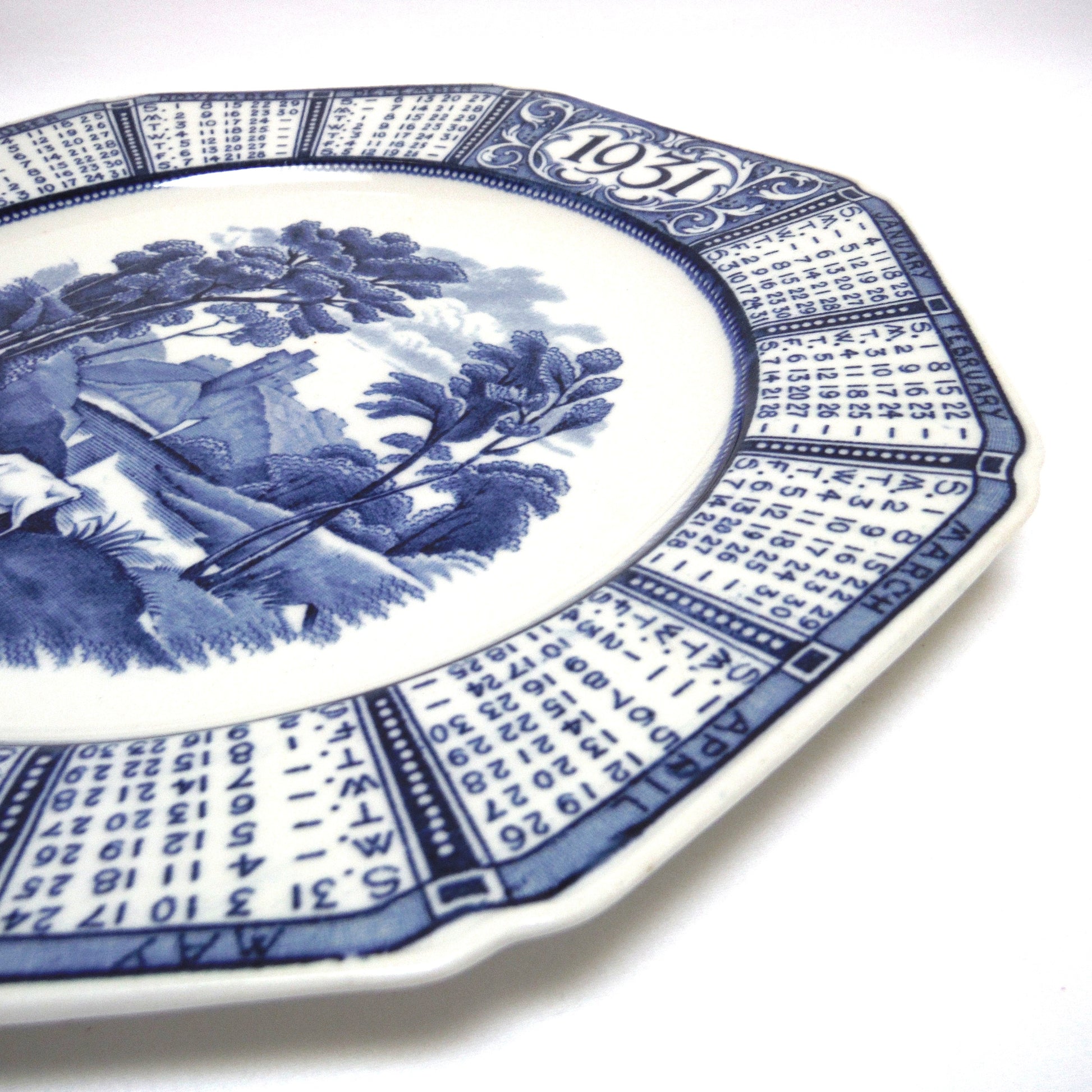 This RARE 1931 Antique Decorative Calendar Plate was made by WOODS BURSLEM of ENGLAND. It was Gold Imprinted for Dion Brothers. of Cut Knife, Saskatchewan. Excellent Condition, no chips or cracks. This plate has truly been loved and protected since 1931!ย