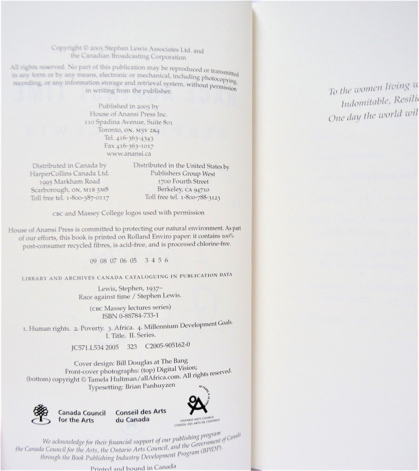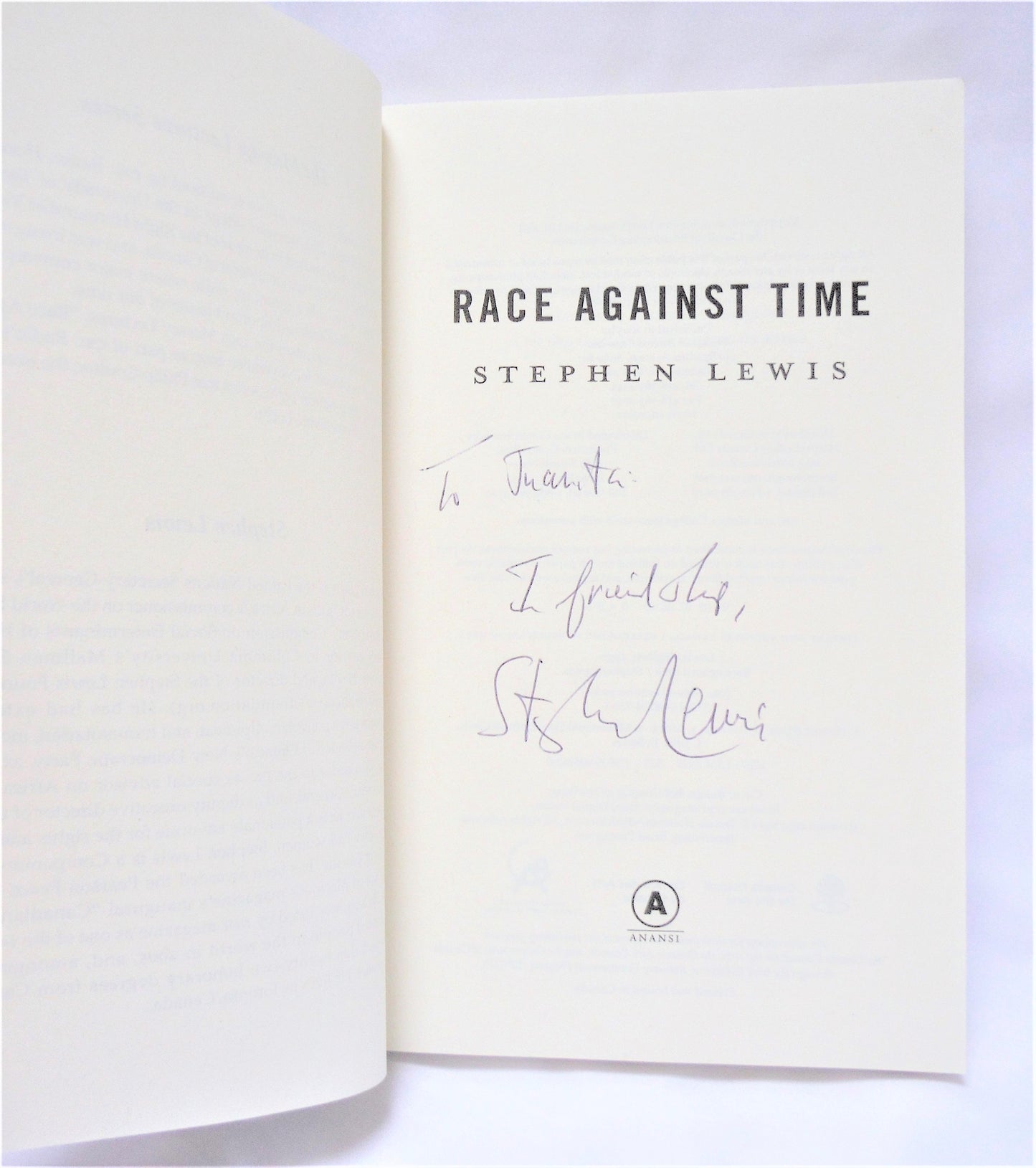 Author: Stephen Lewis. Published by The House of Anansi Press, Toronto, Ontario, 2005, 1st Edition. Printed in Canada. Signed and dedicated by the Author. Almost New Condition SOFTCOVER Book, with minor wear, slight edge stain last few pages not affecting readability. Clean inside, tight spine.
