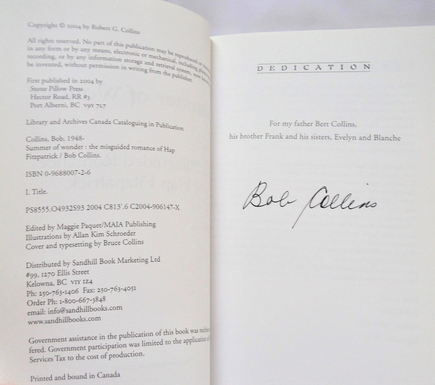 Author: Bob Collins. Published by Stone Pillow Press, Port Alberni, BC., 2004, 1st Edition. Printed in Canada. Signed by the Author. Like New Condition SOFTCOVER Book.