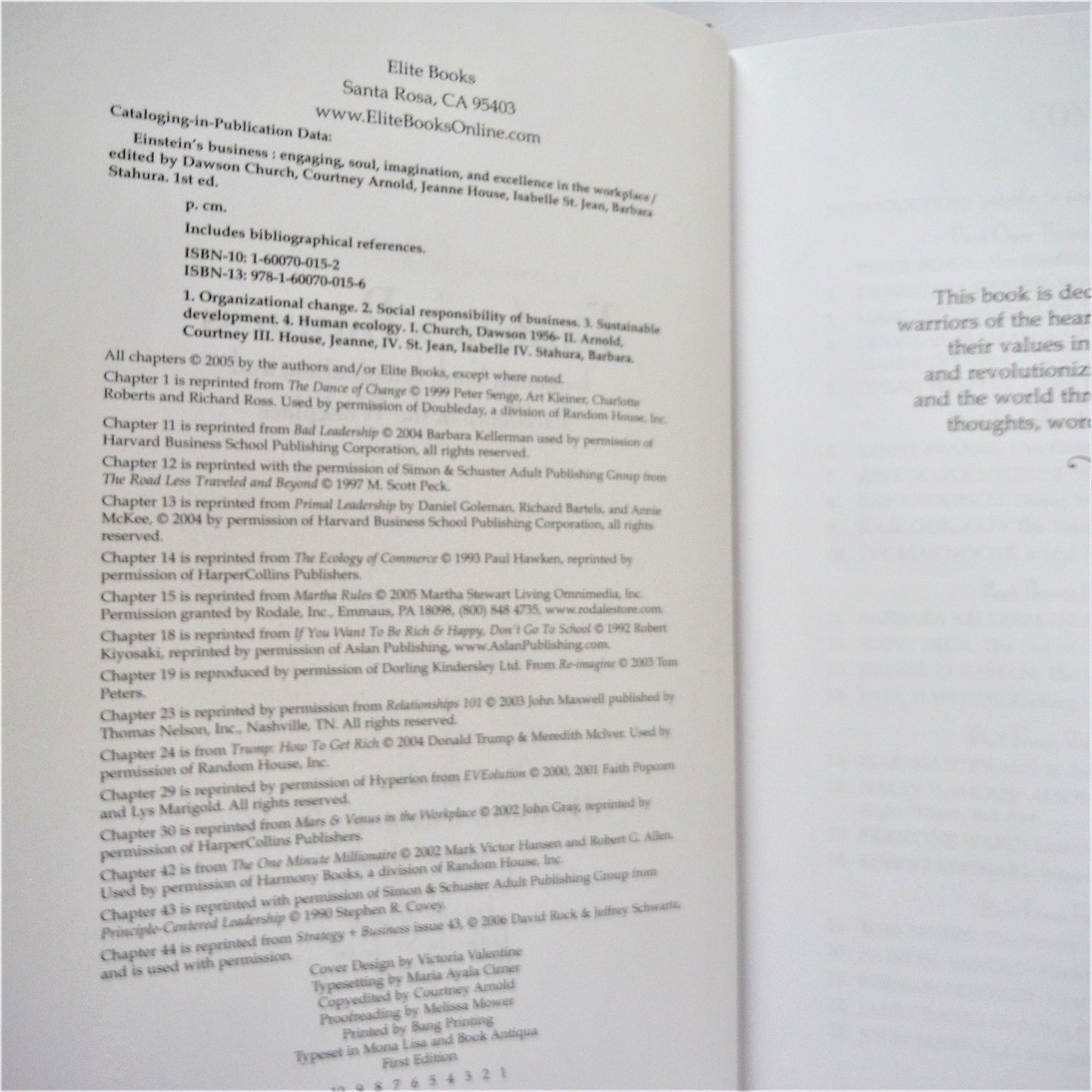 EINSTEIN'S BUSINESS, is an anthology, where contributors infuse their visions, knowledge, and insights into the ongoing conversation about shifting the paradign, expanding consciousness in business, and finding solutions to seemingly impossible challenges.