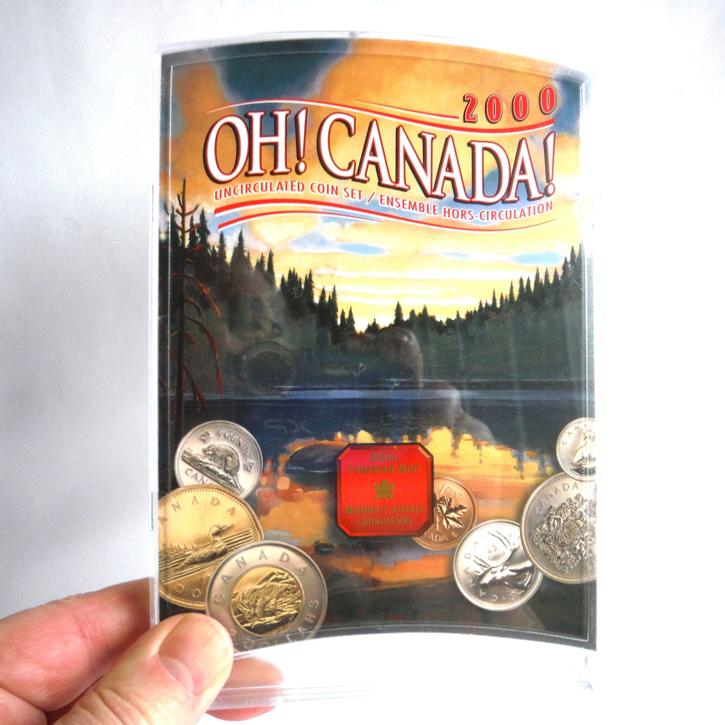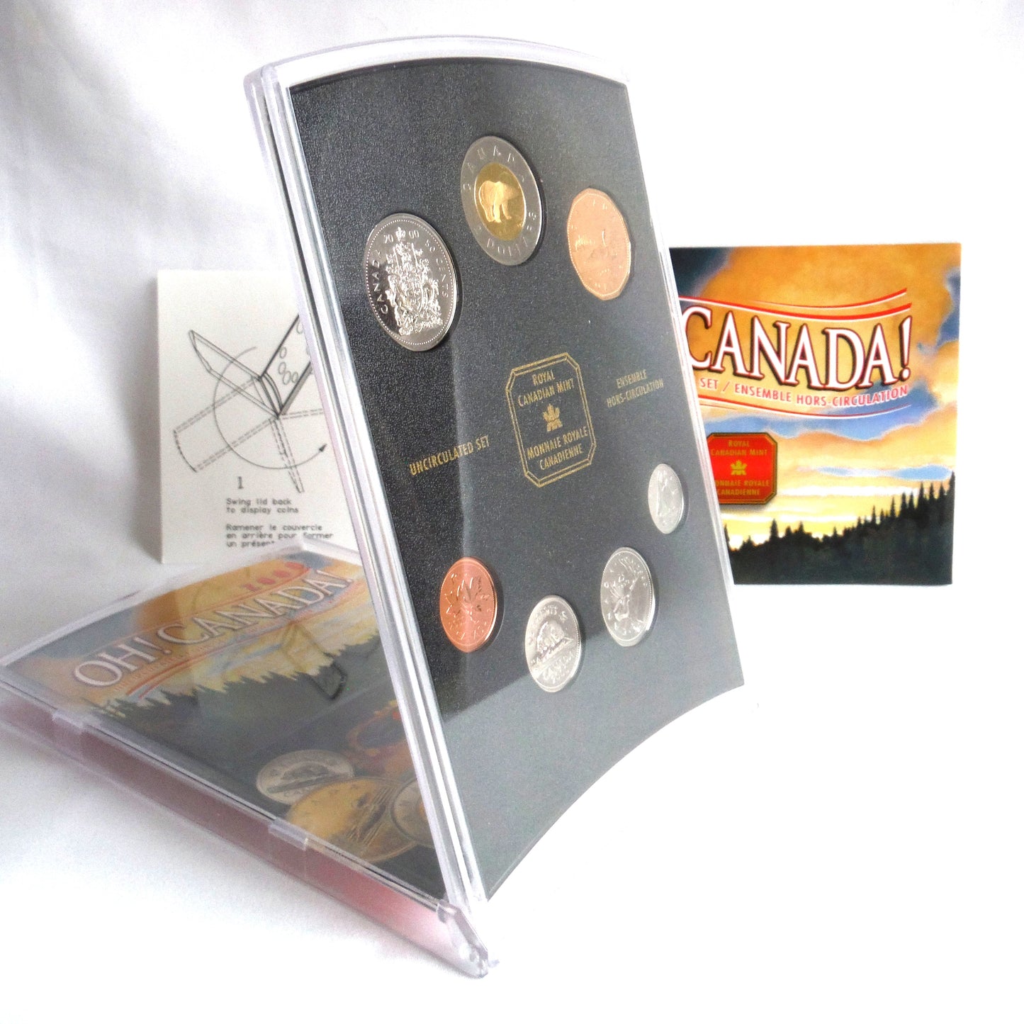 2000 OH! CANADA! Uncirculated Royal Canadian Mint 7-Coin Set, in MINT Plastic Display Case that flips over to showcase both sides of the coins. This 2000 display set includes the $2, $1, 50 cent, 25 cent, 10 cent, 5 cent, and penny coins. All uncirculated. In Brand New condition.