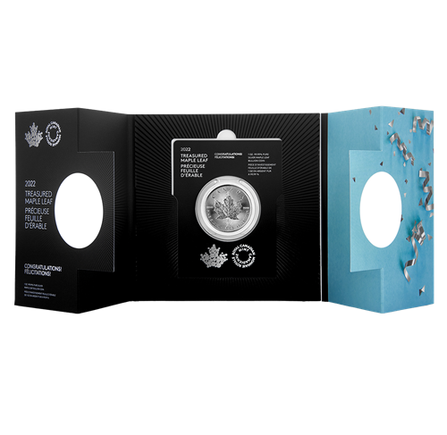 - Your treasured Silver Maple Leaf bullion coin is encapsulated and ready to gift! It comes elegantly presented in a premium card with a themed sleeve and envelope. There’s even space to include a hand-written message that will turn your gift into a personalized keepsake.