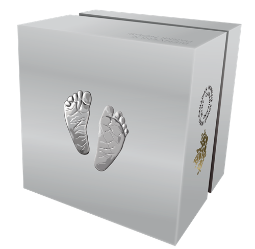 This endearing coin captures the essence of that happy time with a heart-warming design of baby feet struck incuse into the coin, like footprints in the sand. But unlike sand that shifts and fades with time, these imprints are fine silver and will last forever! Celebrate and preserve those first loving memories with this charming and timeless keepsake. It’s presented in a beautiful keepsake box, and includes a specially designed certificate of authenticity with space to add your own personalized message.