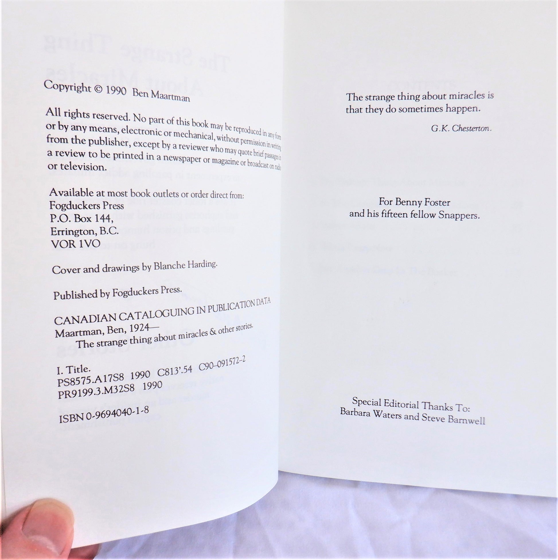Author: Ben Maartman. Published by Fogduckers Press, Errington, BC., 1990, 1st Edition. Signed by the Author. Printed in Canada. Very Good Condition SOFTCOVER Book, with minor cover wear. Tight spine, clean inside.