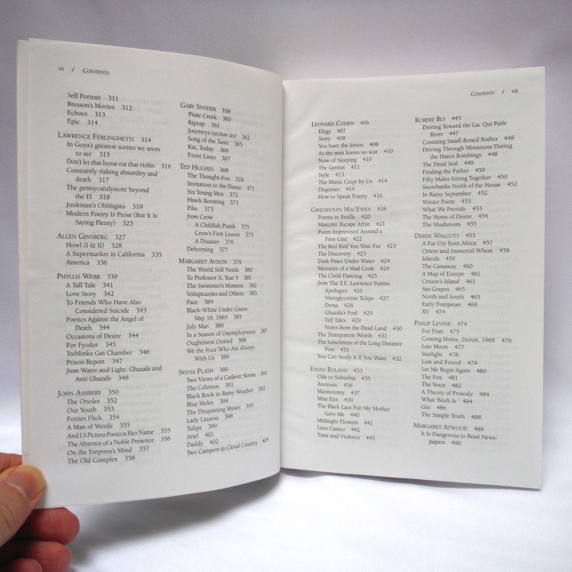 In addition there are useful biographies and comments on the poets, who include Auden, Pound, Elliot and Dylan Thomas. Among the additions to the fourth edition are Nobel Prize winner Derek Walcott, well known American poets Sharon Olds, Louise Gluck, Denise Leverton, Galway Kinnell, Robert Hass, Robert Bly, and Rita Dove; Scottish poet Carol Ann Duffy; Irish poet Eavan Boland; and Canadians Patrick Lane, Sharon Thesen, Don McKay, Erin Moure, and B.P. Nichol.