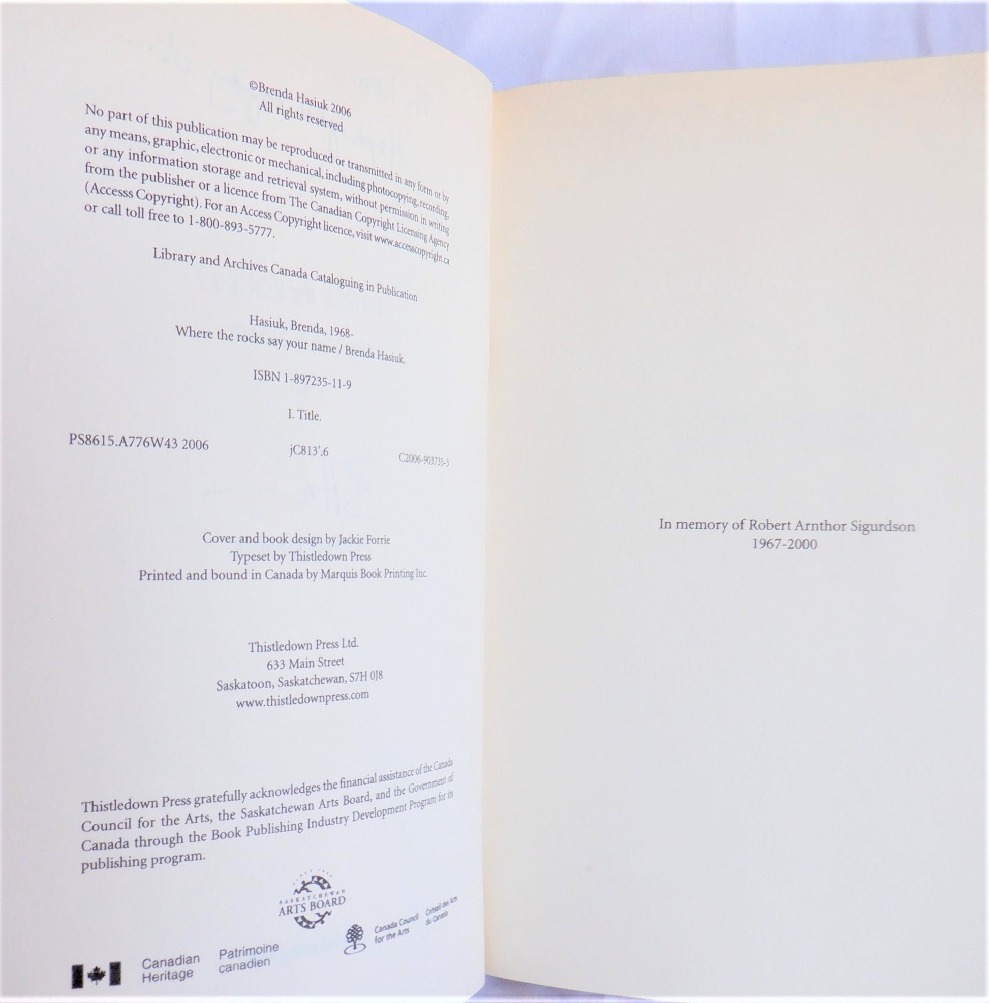 Author: Brenda Hasiuk. Published by Thistledown Press, Saskatoon, SK, 2006, 1st Edition. Signed by Author. Printed in Canada. Almost New Condition SOFTCOVER Book, with minor age-yellowed pages.