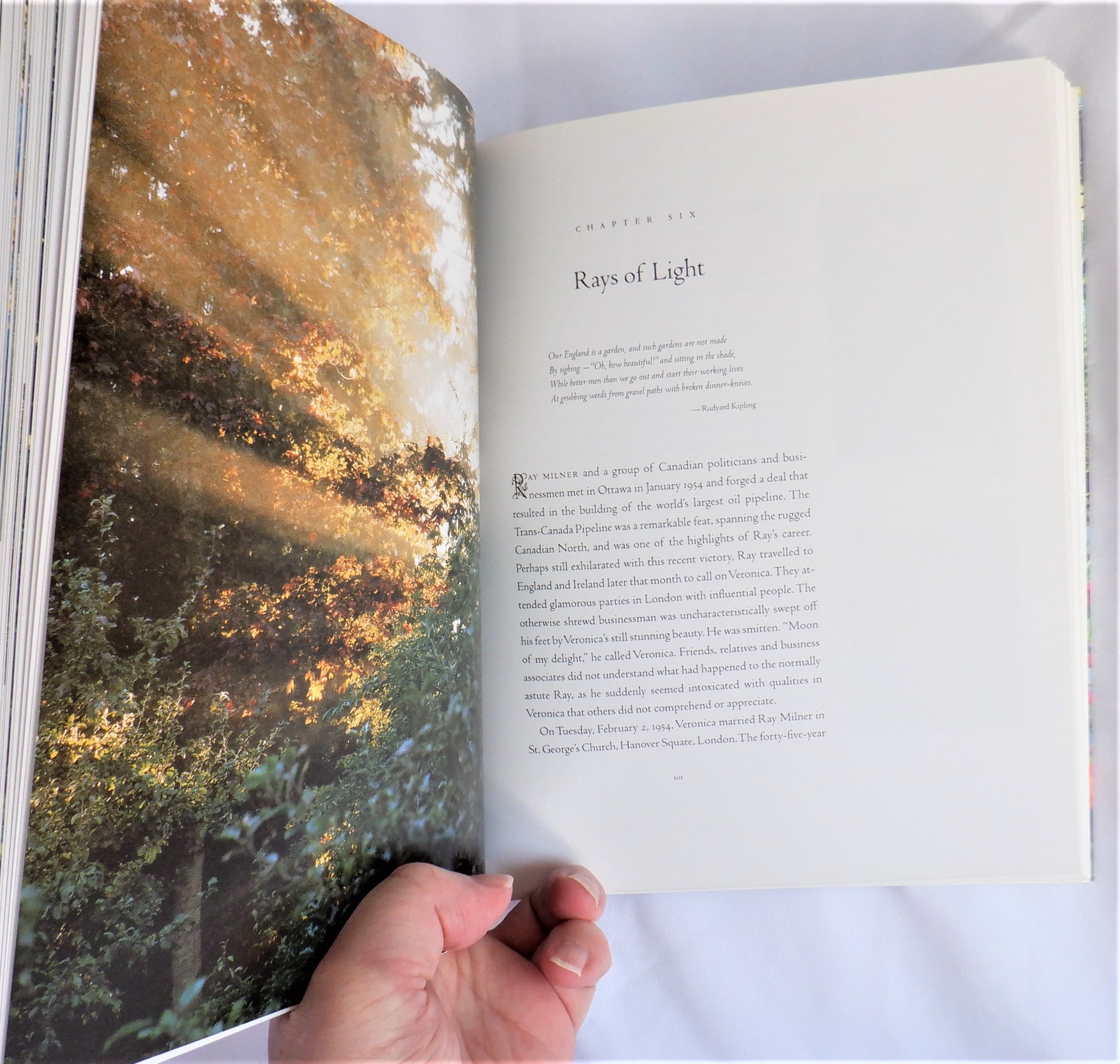 The book traces the life of Veronica Milner, the creative force behind the garden. Born into the Edwardian British aristocracy, she was related to Winston Churchill and Diana, Princess of Wales. As a young bride, she moved to an Irish castle. When widowed after an unhappy marriage, she remarried and moved to Canada where she built a garden in the style of Victorian garden writer William Robinson. Visitors to the garden included royalty. Malaspina University-College was gifted the garden in 1996.