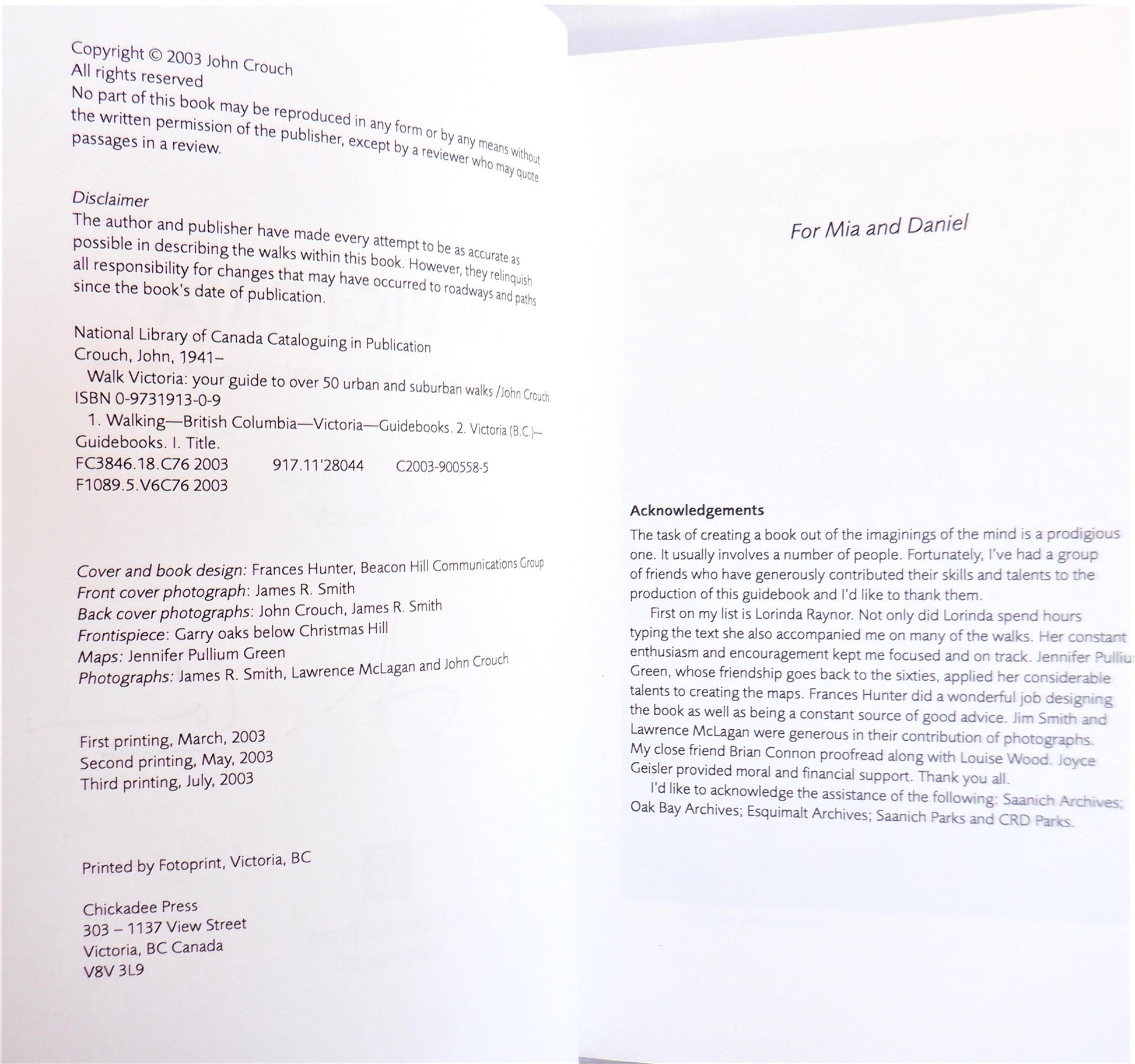 Author: John Crouch. Published by Chickadee Press, Victoria, BC., 2003. 1st Edition. (3rd Printing, 2003). Printed in Canada by Fotoprint, Victoria, BC. Almost New Condition SOFTCOVER Book. Clean inside, tight spine. Size: 5.5 x 8.5 inch, 136 pages.