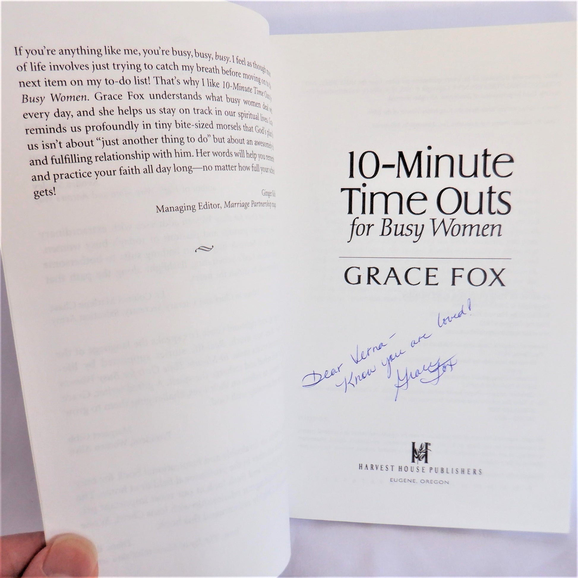10-MINUTE TIME OUTS FOR BUSY WOMEN, by Grace Fox (1st Ed. SIGNED)
