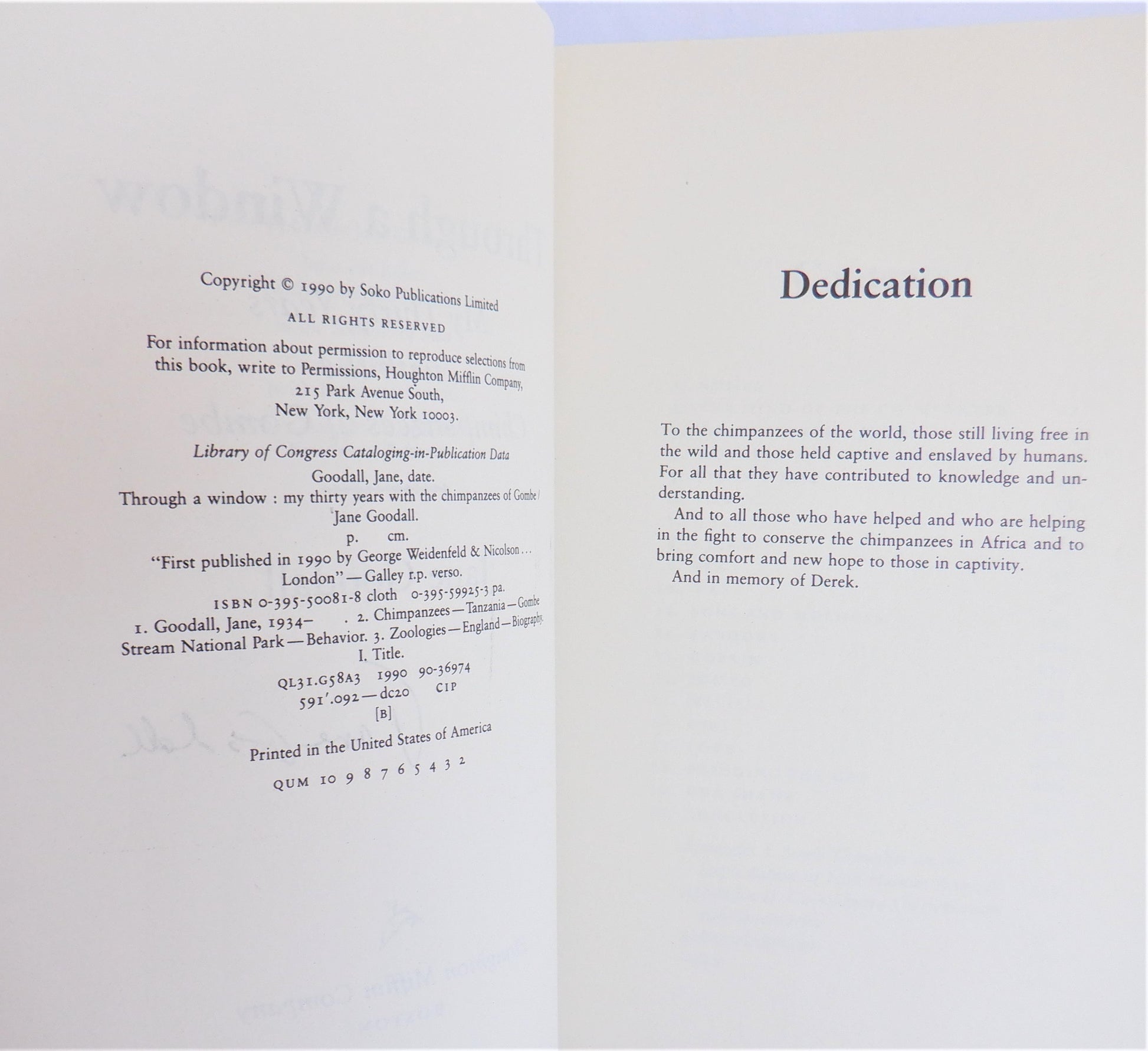 THROUGH A WINDOW, My Thirty Years with the Chimpanzees of Gombe, by Jane Goodall (1st Ed. SIGNED)
