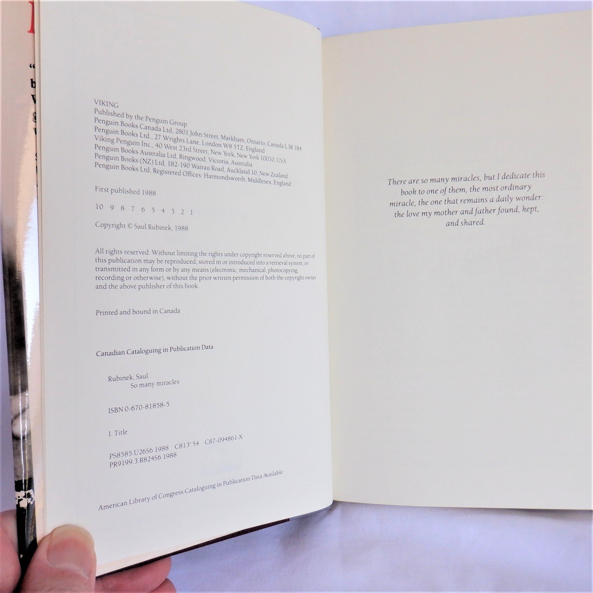 Author: Saul Rubinek. Published by Viking/Penguin Group, Markham, ON., 1988. 1st Ed., Flat Signed by the Author. Printed in Canada. Like New Condition HARDCOVER Book. Like New Dust Jacket. Size: 8.75 x 5.75 inch, 216 pages.