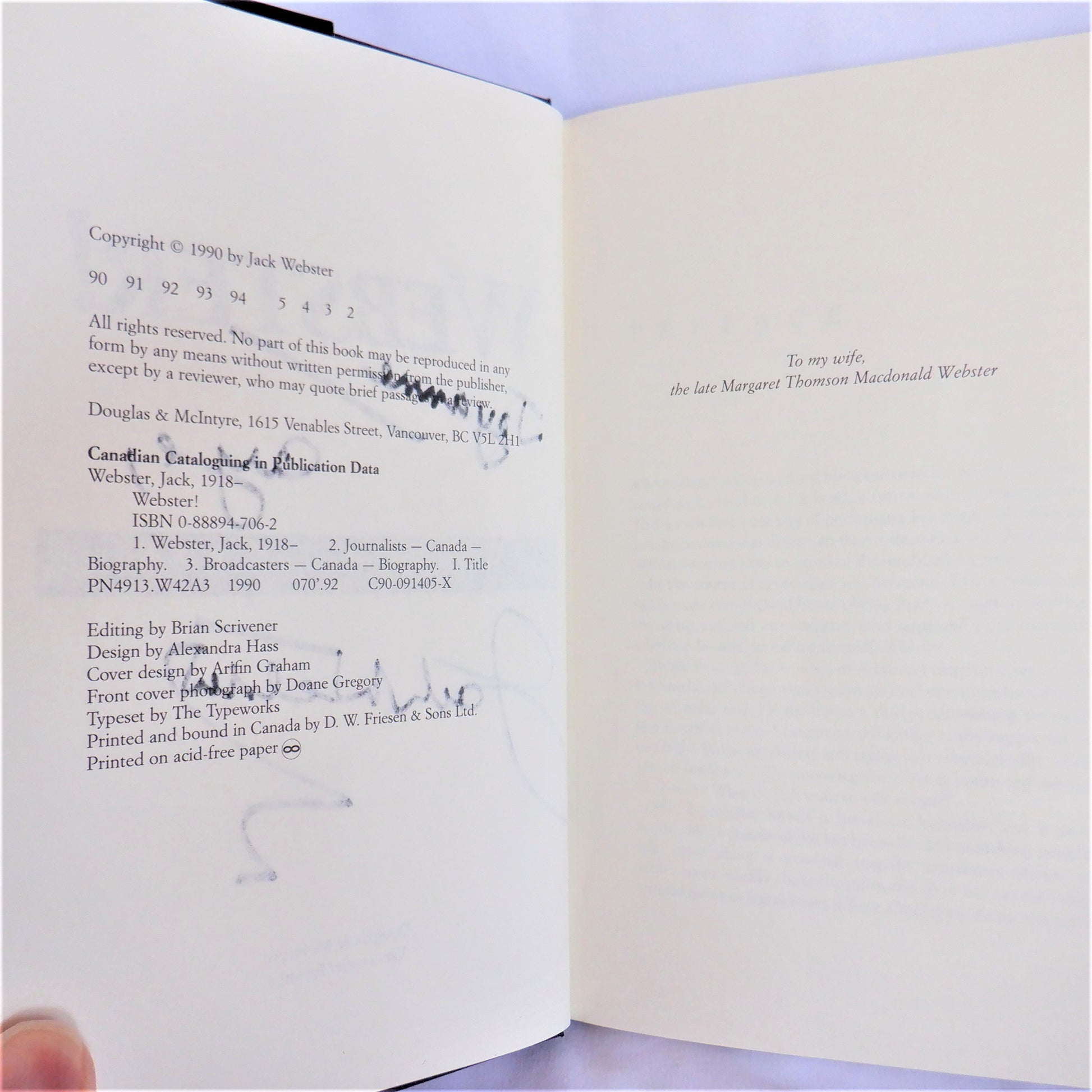 Author: Jack Webster. Published by Douglas & McIntyre, Vancouver, BC., 1990. 1st Edition. Signed and Dedicated by the Author. Printed in Canada by Friesens. Like New Condition HARDCOVER Book. Like New Condition Dust Jacket. Size: 9.25 x 6.25 inch, 247 pages.