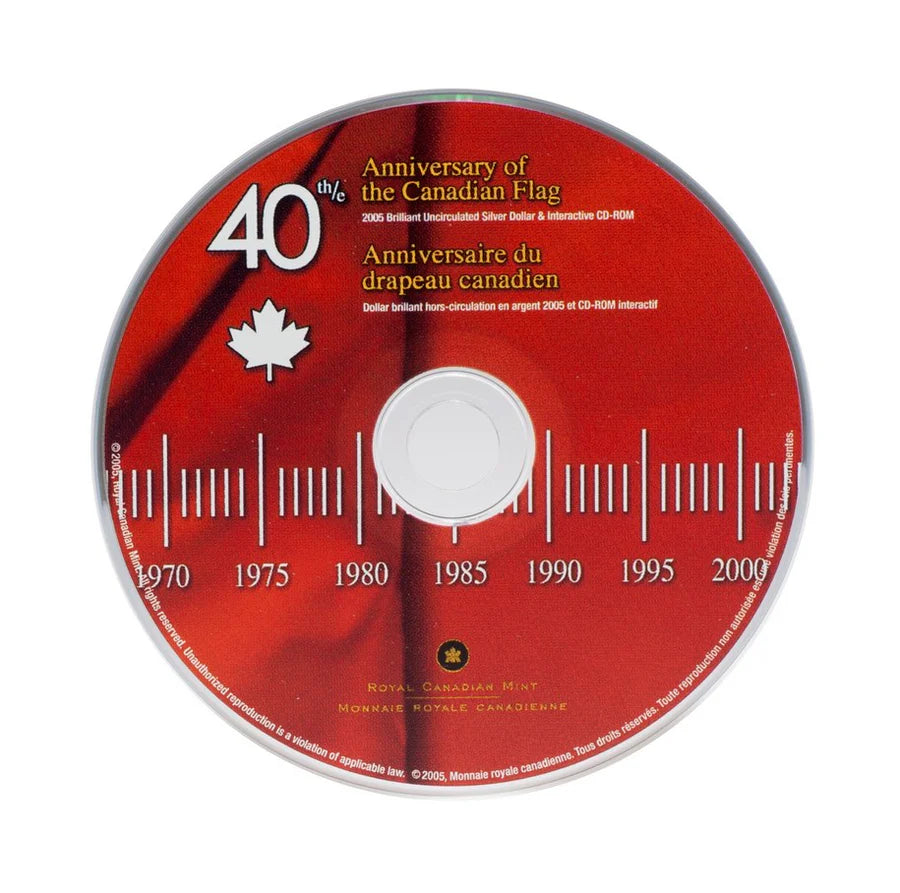 40th Anniversary of The Canadian Flag: A 2005 Brilliant Uncirculated Silver Dollar & Interactive CD-ROM!