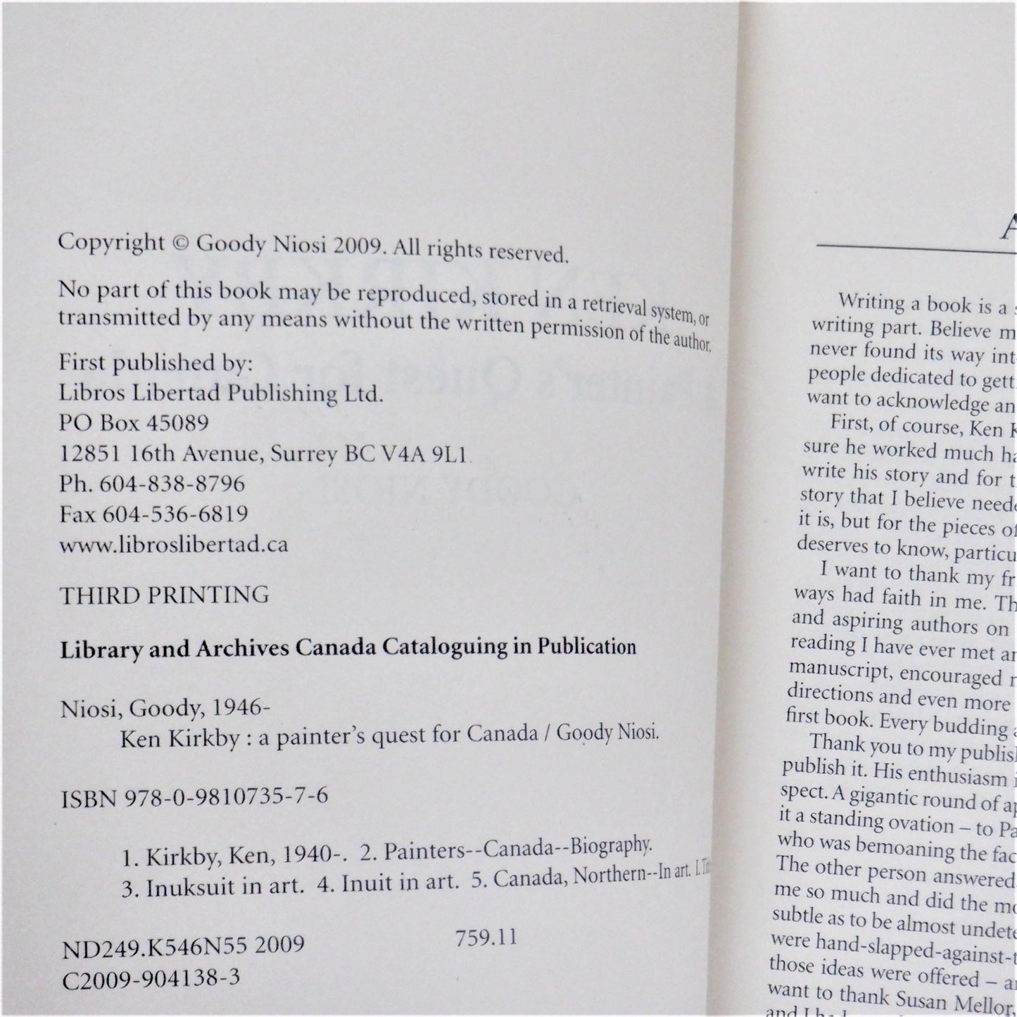 Author: Goody Niosi. Published by Libros Libertad Publishing, Surrey, BC., 2009, 1st Edition, 3rd printing. Flat Signed by the Artist, Ken Kirkby, on the title page. Printed in Canada. Like New Condition SOFTCOVER Book. Size: 9 x 6 inch, 285 pages.