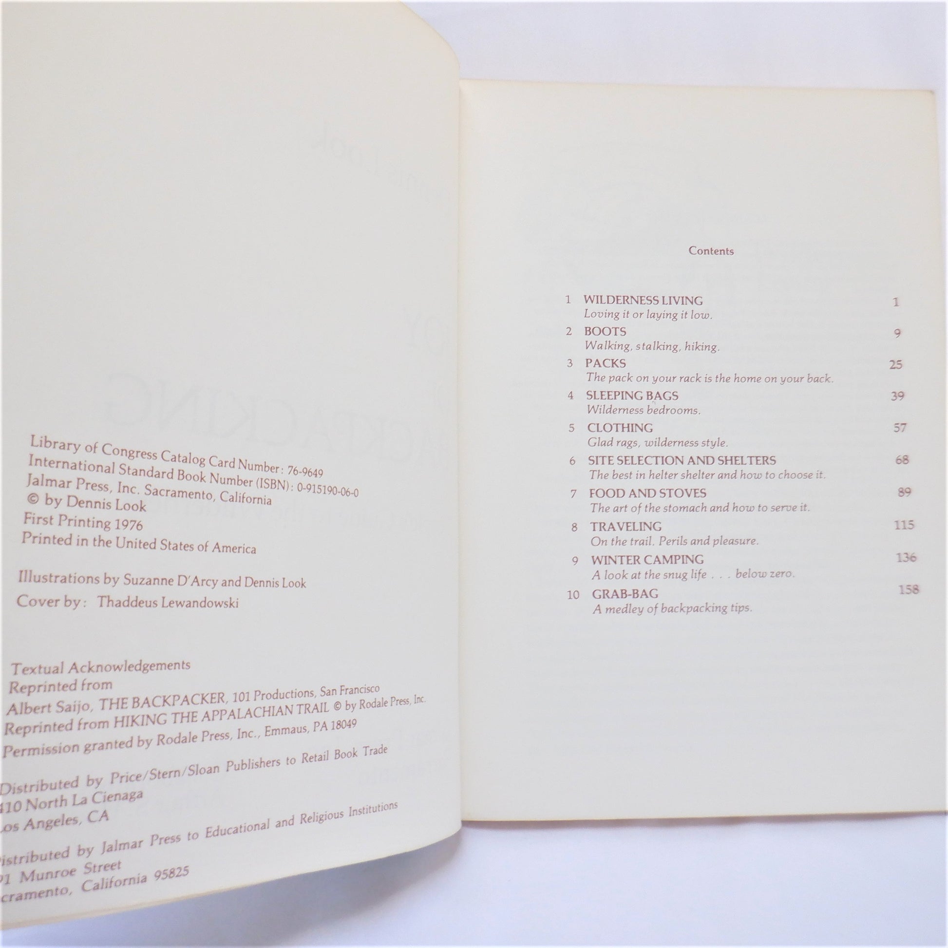 Author: Dennis Look. Published by Jolimar Press, Sacramento, California, 1976, 1st Edition. Printed in USA. A Good Condition SOFTCOVER Book, with minor age-yellowing, and light cover wear. Clean inside, tight spine. This book was loved and read, but unlike many other copies, this book actually made it's way back from the trail and is now available for you!Β