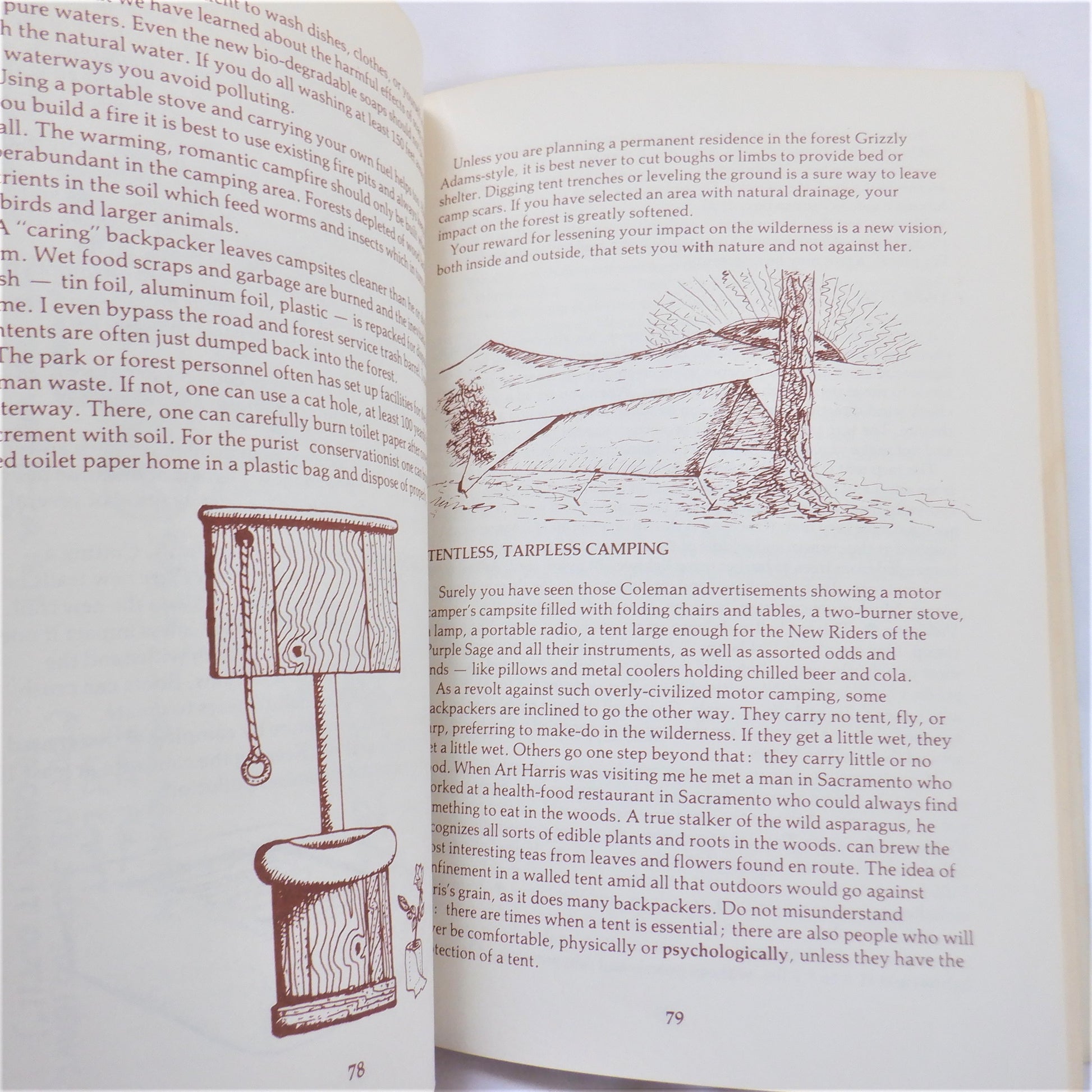 JOY OF BACKPACKING, People's Guide to the Wilderness by Dennis Look, is an old but reliable classic manual that details backpacking tips, and everything else that you need to know about the trail, regardless of the year! Beautiful illustrations by Suzanne D'Arcy and Dennis Look.