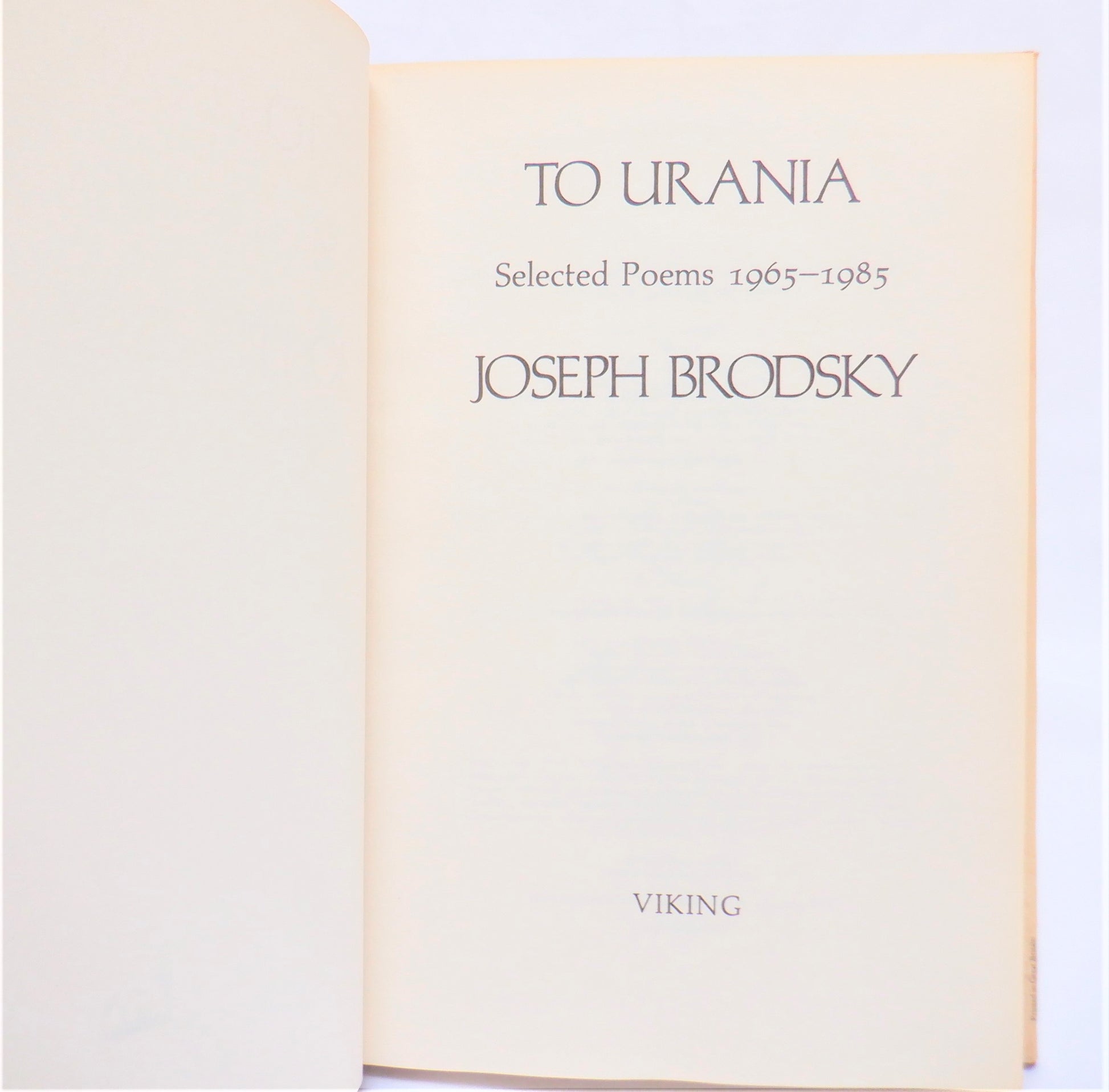 Combining two books of verse that were first published in his native Russian, TO URANIA, was Brodsky's third volume to appear in English. Published in 1988, the year after he was awarded the Nobel Prize in Literature, this collection features pieces translated by the poet himself and others, as well as poems written originally in English.