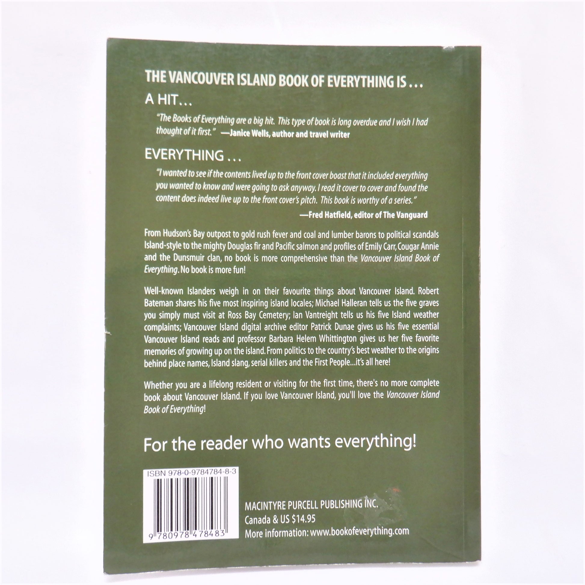 VANCOUVER ISLAND BOOK OF EVERYTHING, is a small pocket book that answers questions from Island Slang, to Salmon Runs, to Emily Carr. There's also well-known Islanders weighing-in on their favourite things about Vancouver Island. Paul says..."Happy Travels in this Great Country of Ours!"