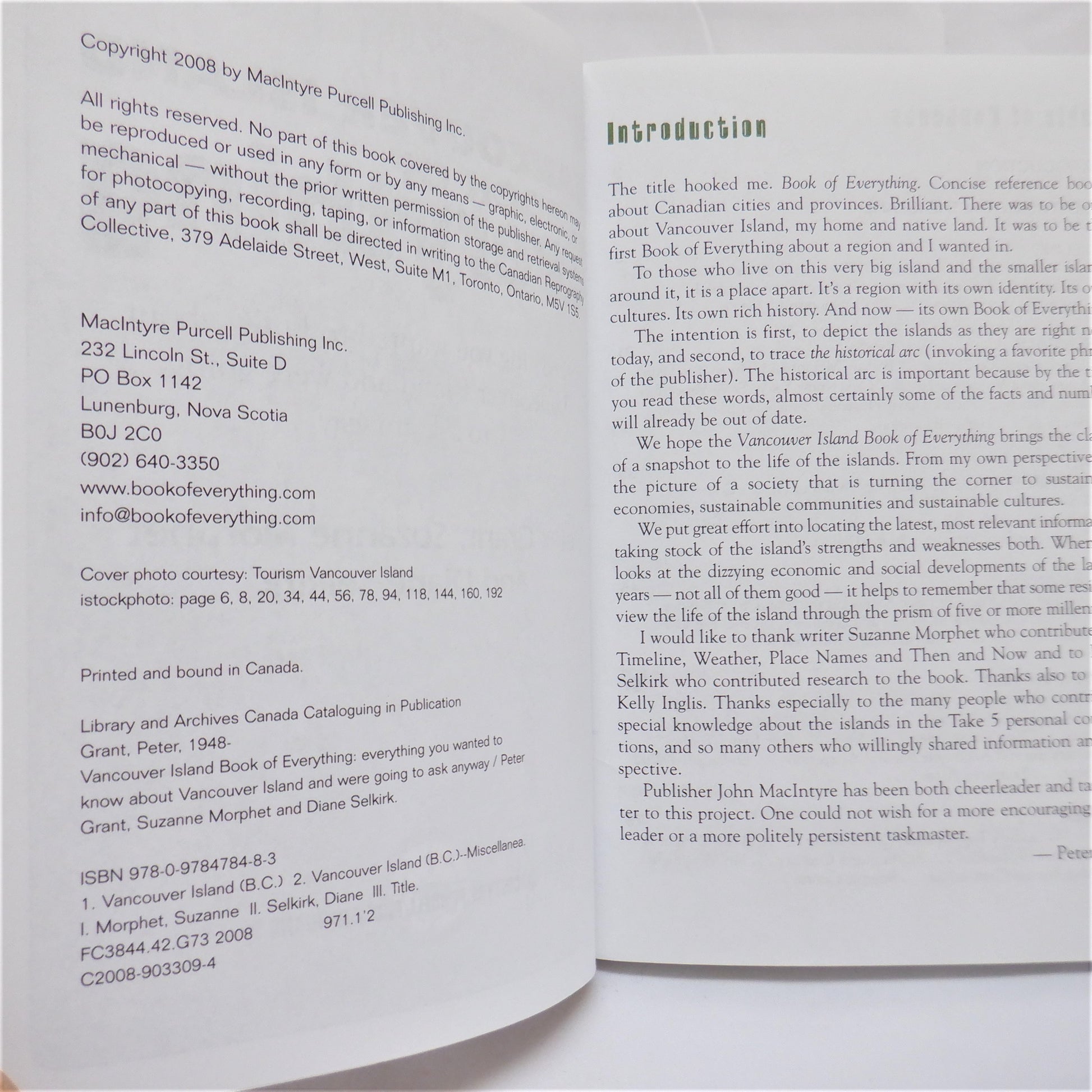 VANCOUVER ISLAND BOOK OF EVERYTHING, by Peter Grant, Suzanne Morphet and Diane Selkirk (2008 1st Ed.)