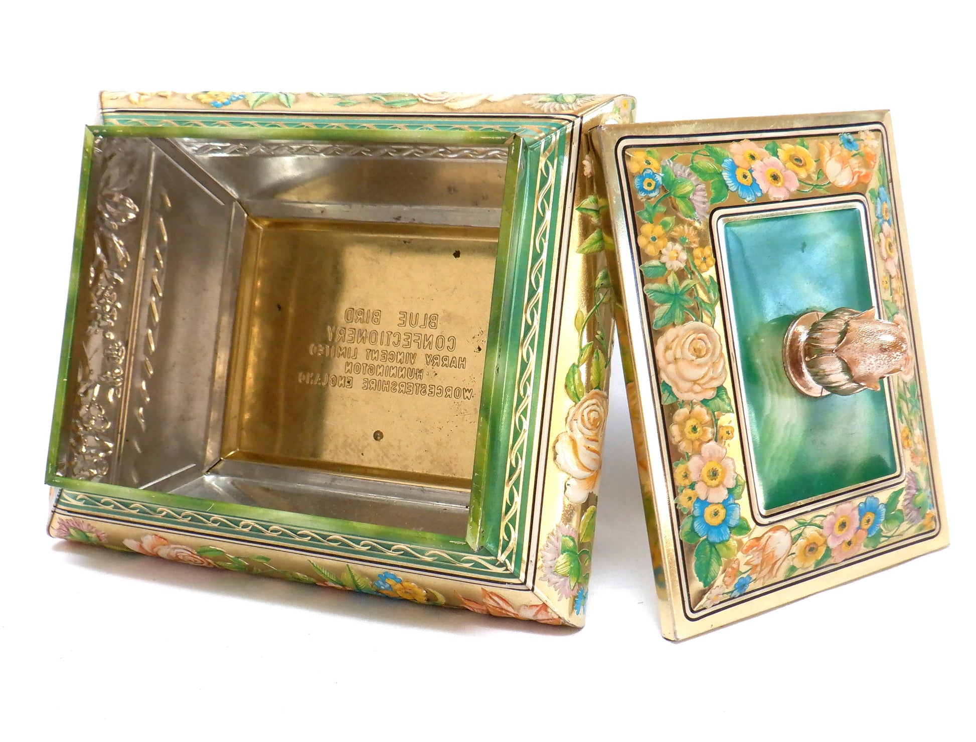 BLUE BIRD VINTAGE TIN, Confectionery by Harry Vincent Limited: MARBLED GREEN w/ Roses #1