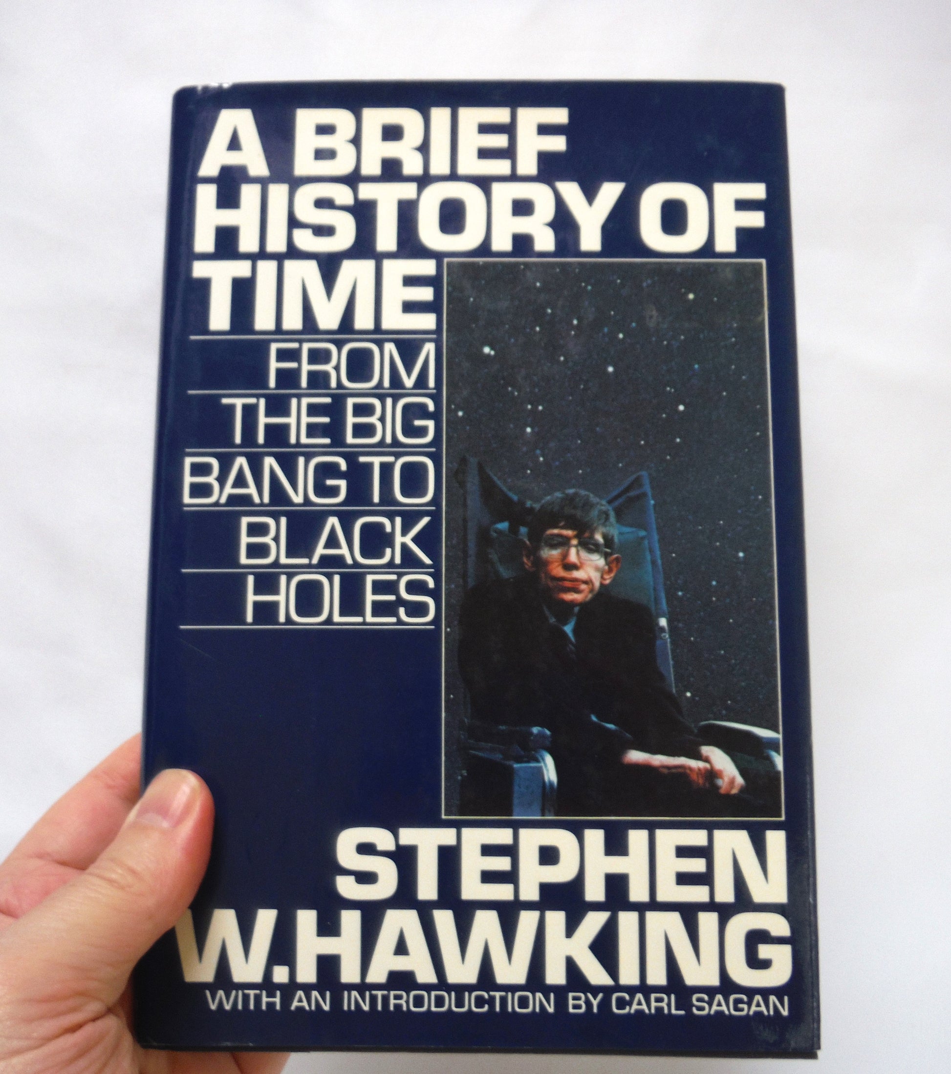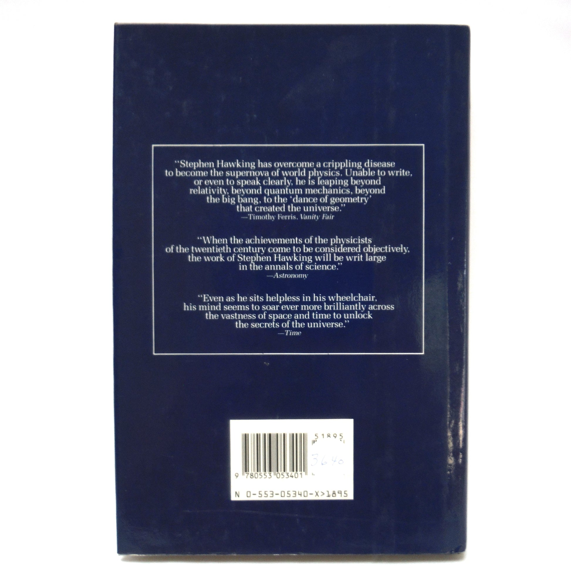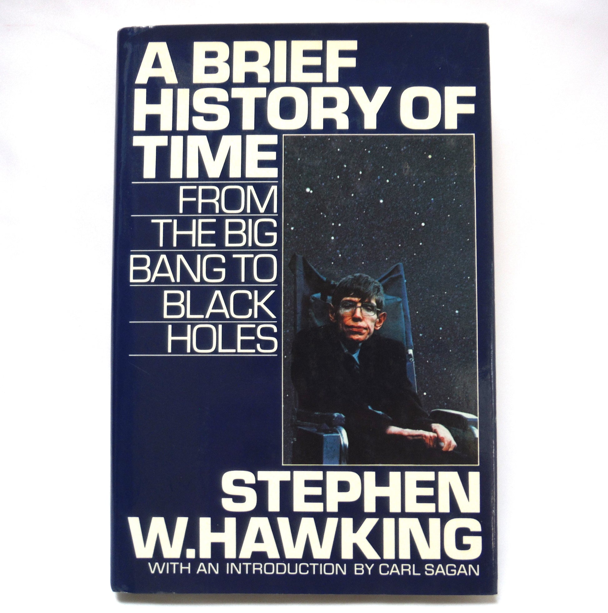 Author: Stephen W. Hawking. Introduction by Carl Sagan. Illustrations by Ron Millarer. Published by Bantam Books, Toronto, ON., 1988, 1st Edition. Printed in USA. Very Good Condition HARDCOVER Book, and Very Good Condition Dust Jacket, with minor cover scuff. Clean inside, tight spine.Size: 9.25 x 6.25 inch, 198 pages including index.ย BONUS: Included with your purchase in an August 1997 Calgary Herald newspaper article about this very book!