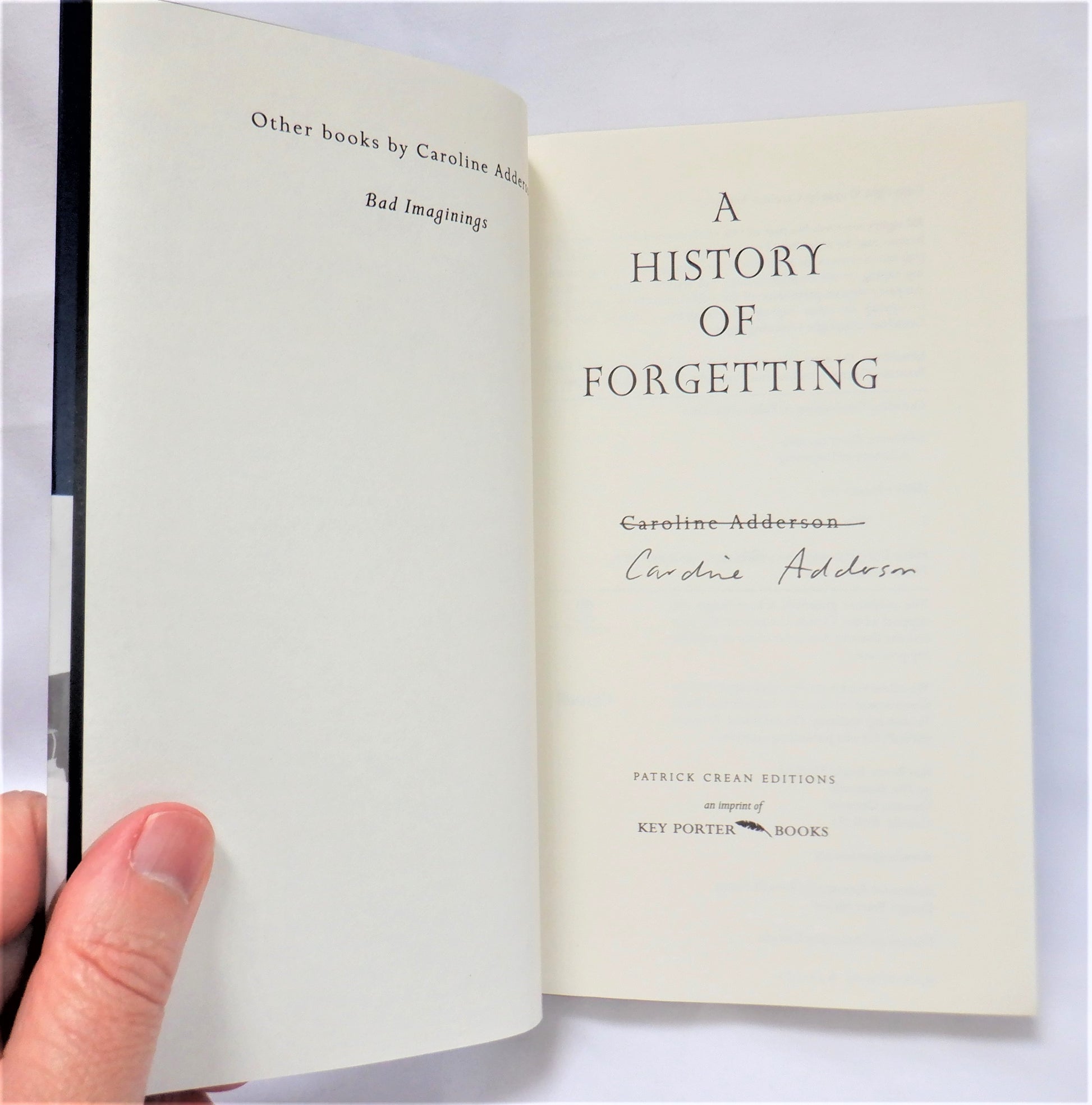 A HISTORY OF FORGETTING, A Novel by Caroline Adderson (1st Ed. SIGNED)