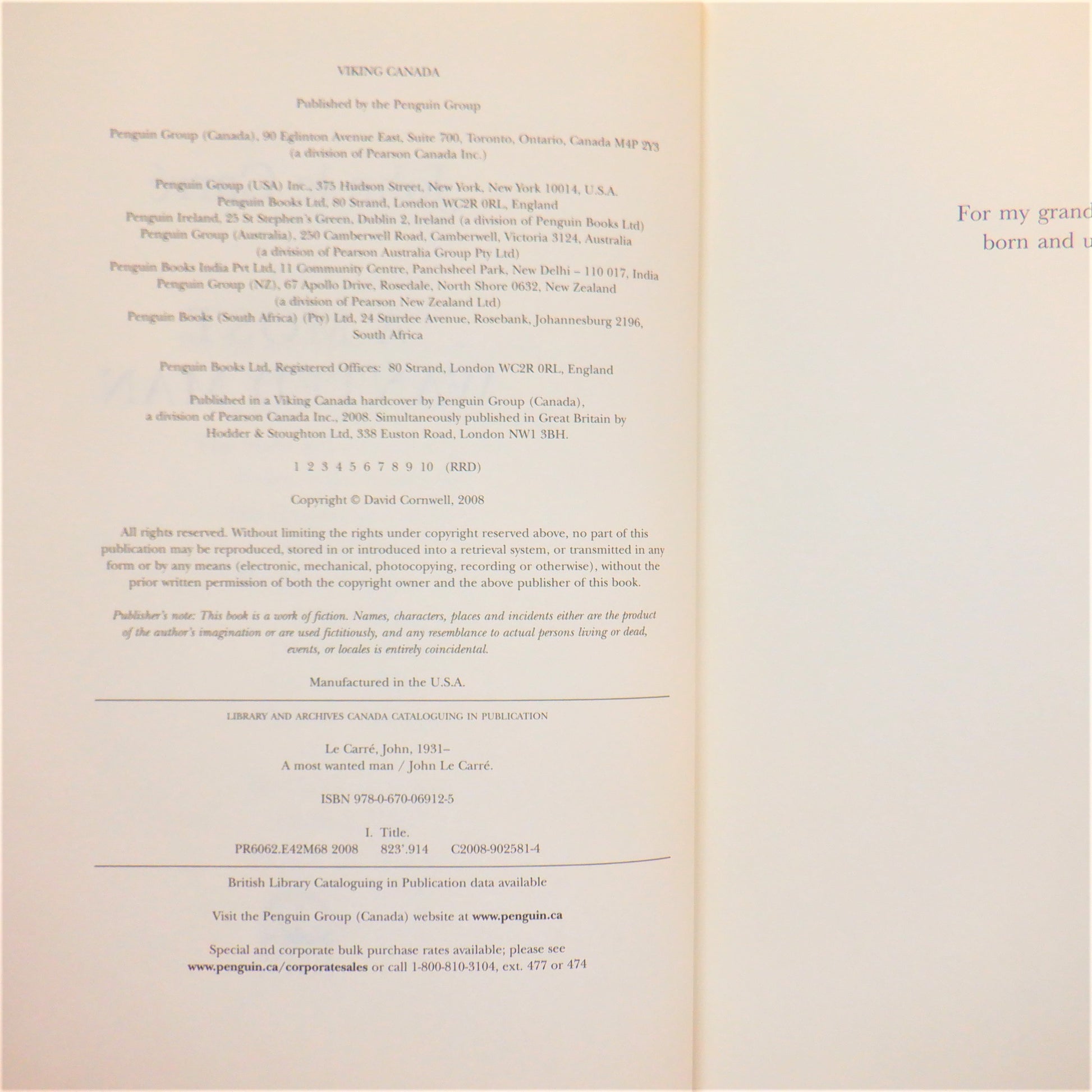 Author: John Le Carre. Published by Penguin Group, Toronto, ON., 2008, 1st Edition. Printed in USA. Like New Condition HARDCOVER Book. Like New Condition Dust Jacket, unclipped. Size: 9.25 x 6.25 inch, 340 pages.