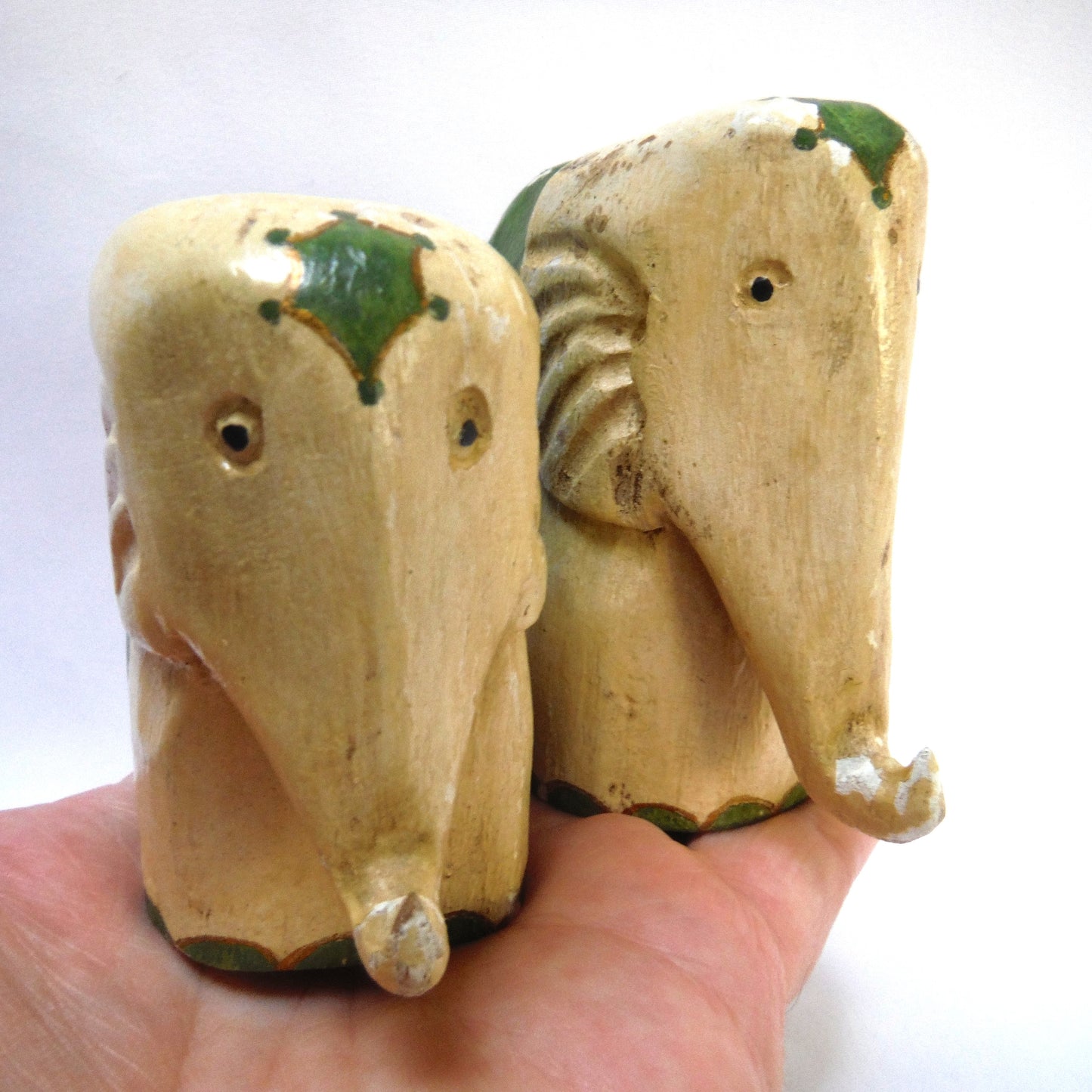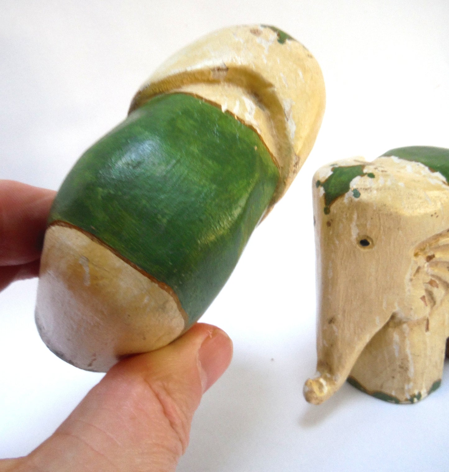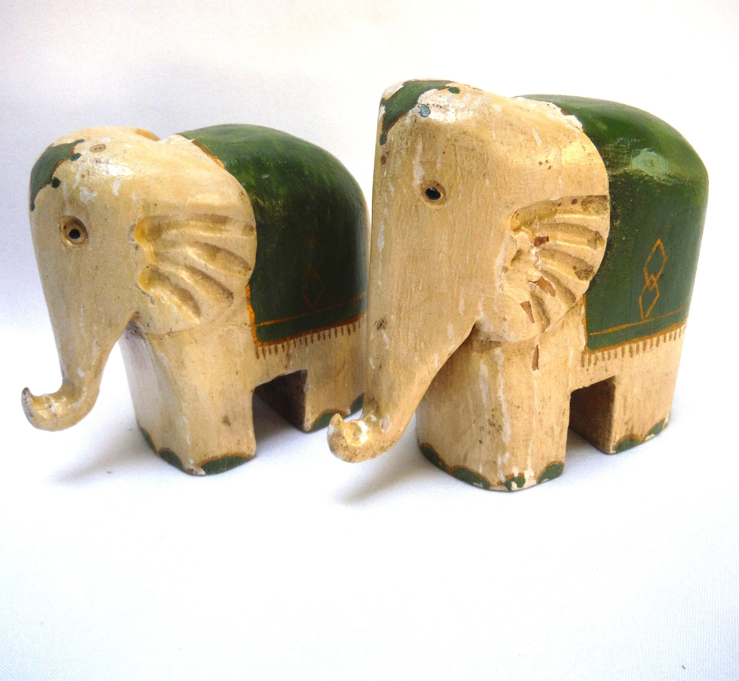 A Pair of Small Wooden Hand-Carved and Painted ELEPHANTS, Hand Made in Equador