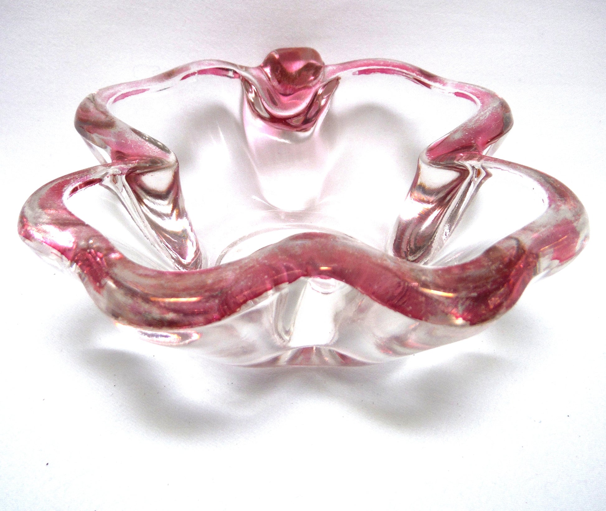 Antique Glass Trinket Tray: THE PINK FOUR LEAF CLOVER!