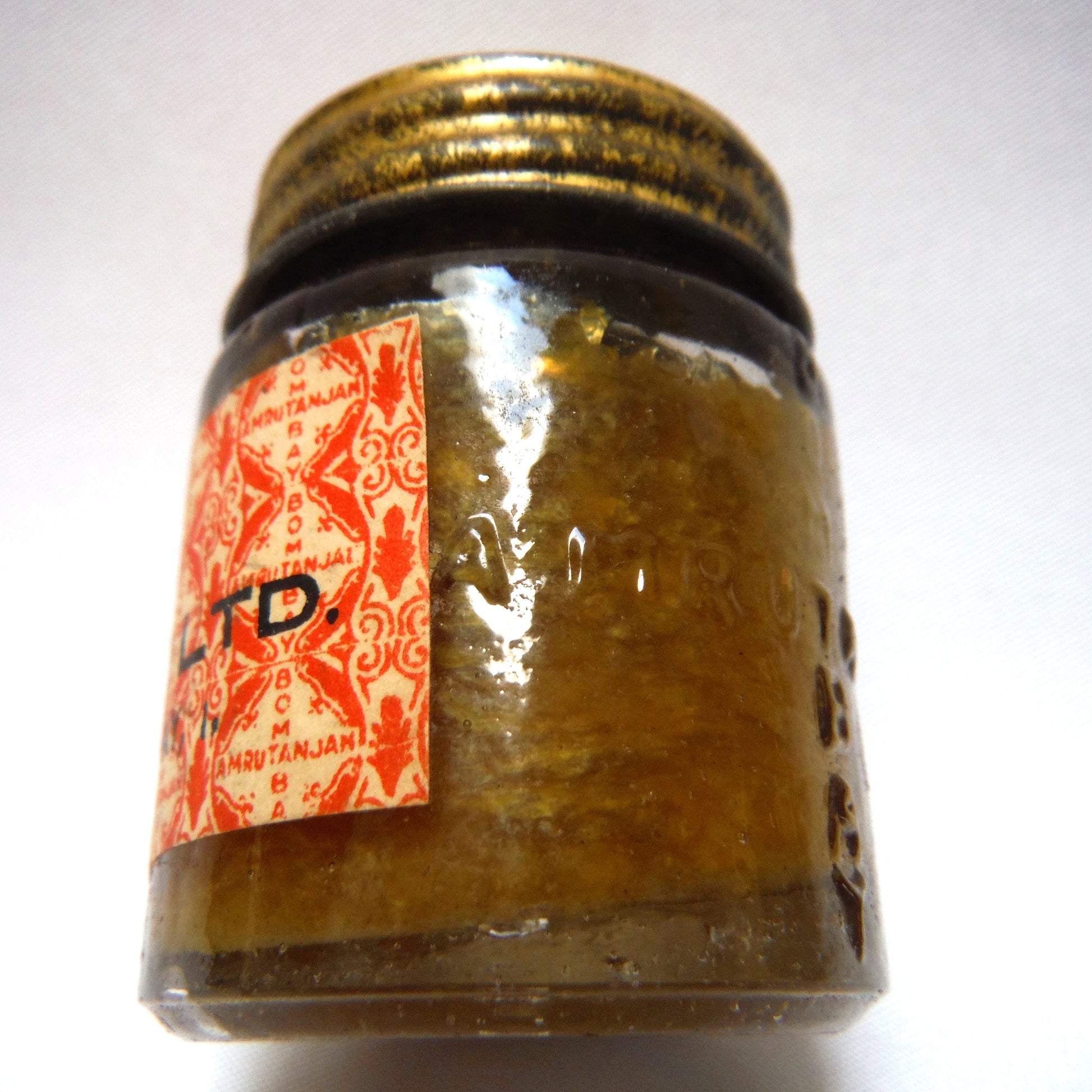 Antique RARE WWII Tin and Glass Container: AMRUTANJAN BEST INDIAN PAIN BALM