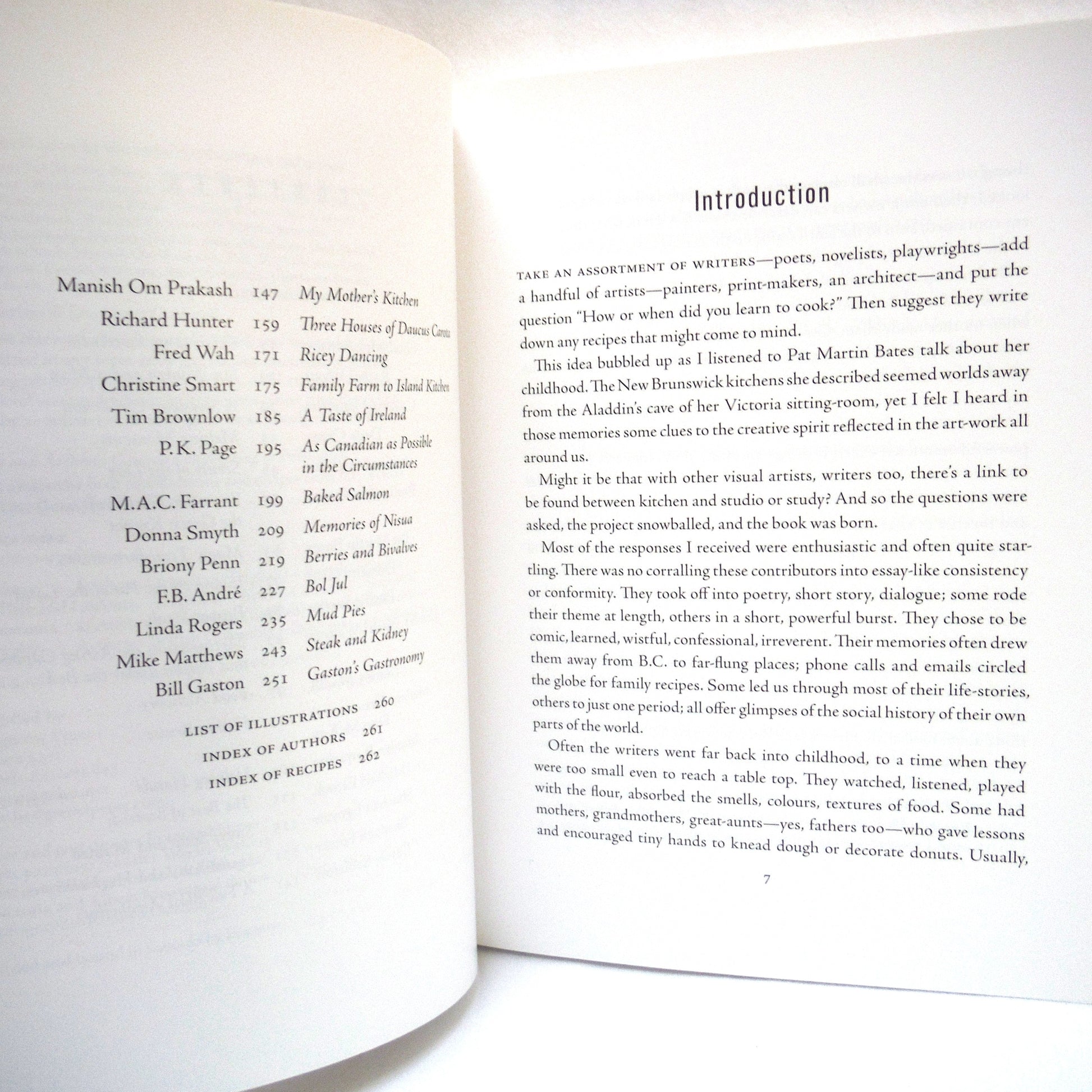 Invited to reflect on how and when they learnt to cook, the authors responded in a variety of styles, some comic, some moving, all illuminating . . . . Among the thirty contributors are Pat Martin Bates, Shushan Egoyan, Bill Gaston, Pauline Holdstock, Catherine Jameson, Don McKay, P.K. Page, Briony Penn, Manish Om Prakash, Carole Sabiston, Phyllis Serota, Fred Wah and Rachel Wyatt. With full-colour illustrations from the artists, the book is a unique compendium of art, memoirs and cookery.