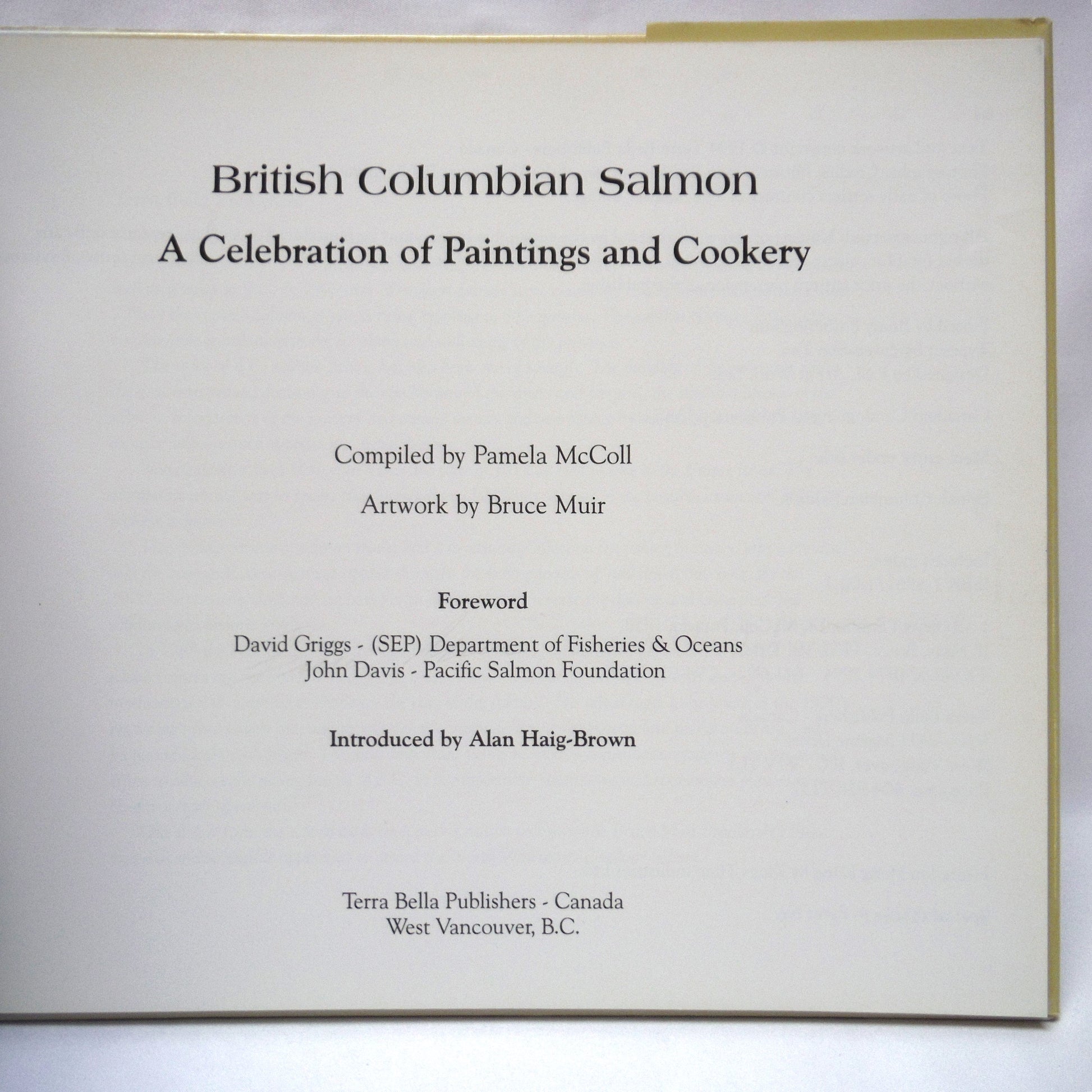 Okay, so BRITISH COLUMBIA SALMON, A Celebration of Paintings and Cookery by Pamela McColl, is an incredible book about salmon, and paintings of salmon, and cooking with salmon, and salmon recipes, but did you hear the part about your new cookbook was SIGNED by Bruce Muir and none-other than ALAN HAIG-BROWN? Wouldn't it be sweet to drop that little recipe fact at your next dinner party?