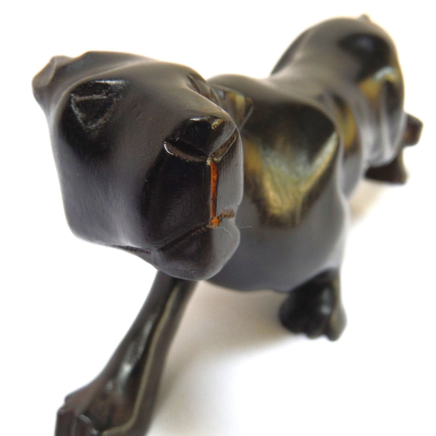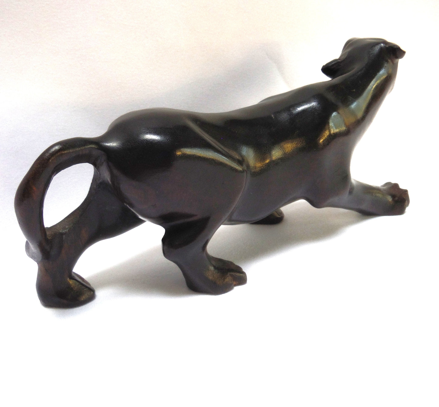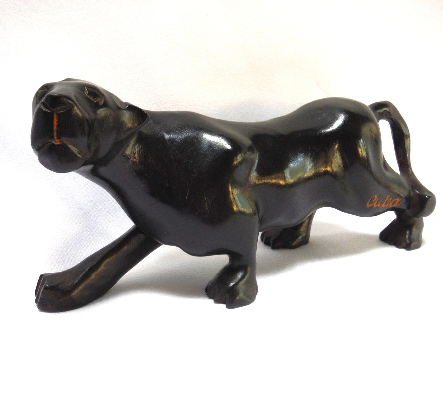 This CUBAN Wooden Hand-Carved Figurine is titled 'THE BLACK PANTHER', and it's in perfect condition, no scratches. The colour is deep black, and the carving and finish is sexy and smooth. The name "CUBA" is carved onto the back leg.ย