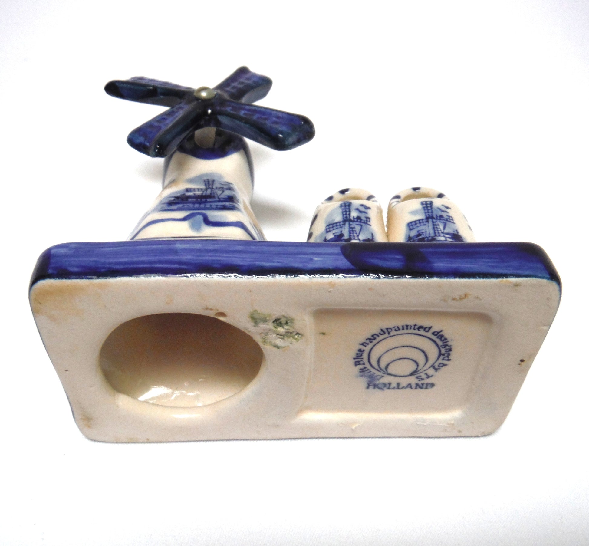 DELFT Blue Holland Figurine Statue: Dutch Windmill and Pair of Clogs on a Sturdy Stand