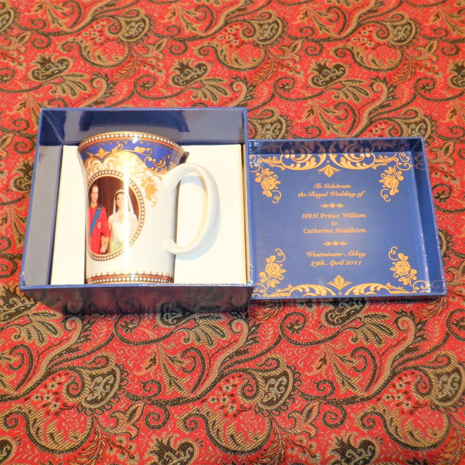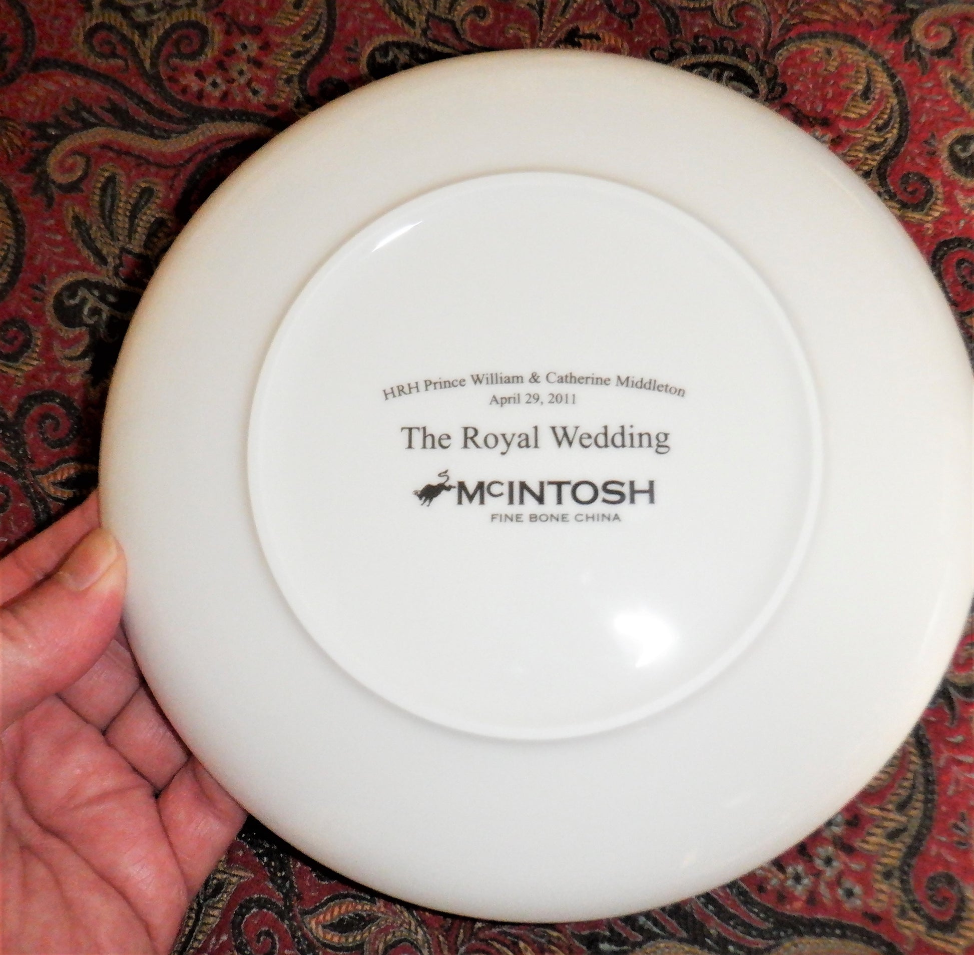 This ROYAL WEDDING PLATE AND 2-TEA CUP Commemorative Set was made by the McIntosh Fine Bone China Company to celebrate the historic union of HRH Prince William to Catherine Middleton, at Westminster Abbey on 29th April 2011. The full-colour photograph of our future King with his lovely bride is stunning and displayed front and center on both the plate and the mugs.