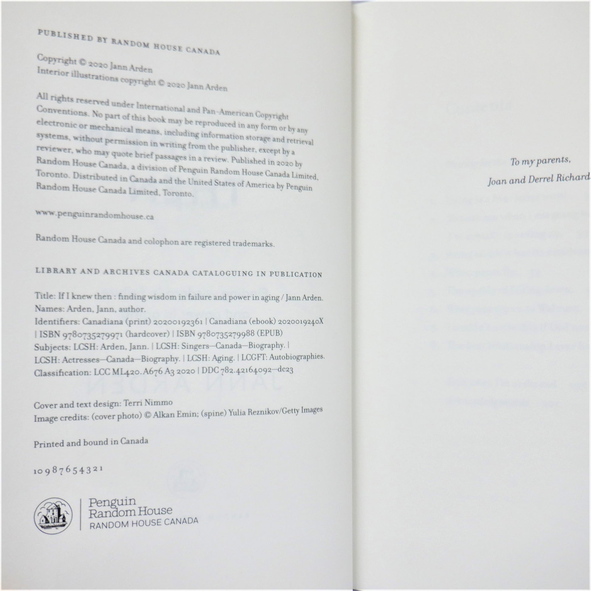 IF I KNEW THEN, Finding Wisdom in Failure and Power in Aging, by Jann Arden (1st Ed. SIGNED)