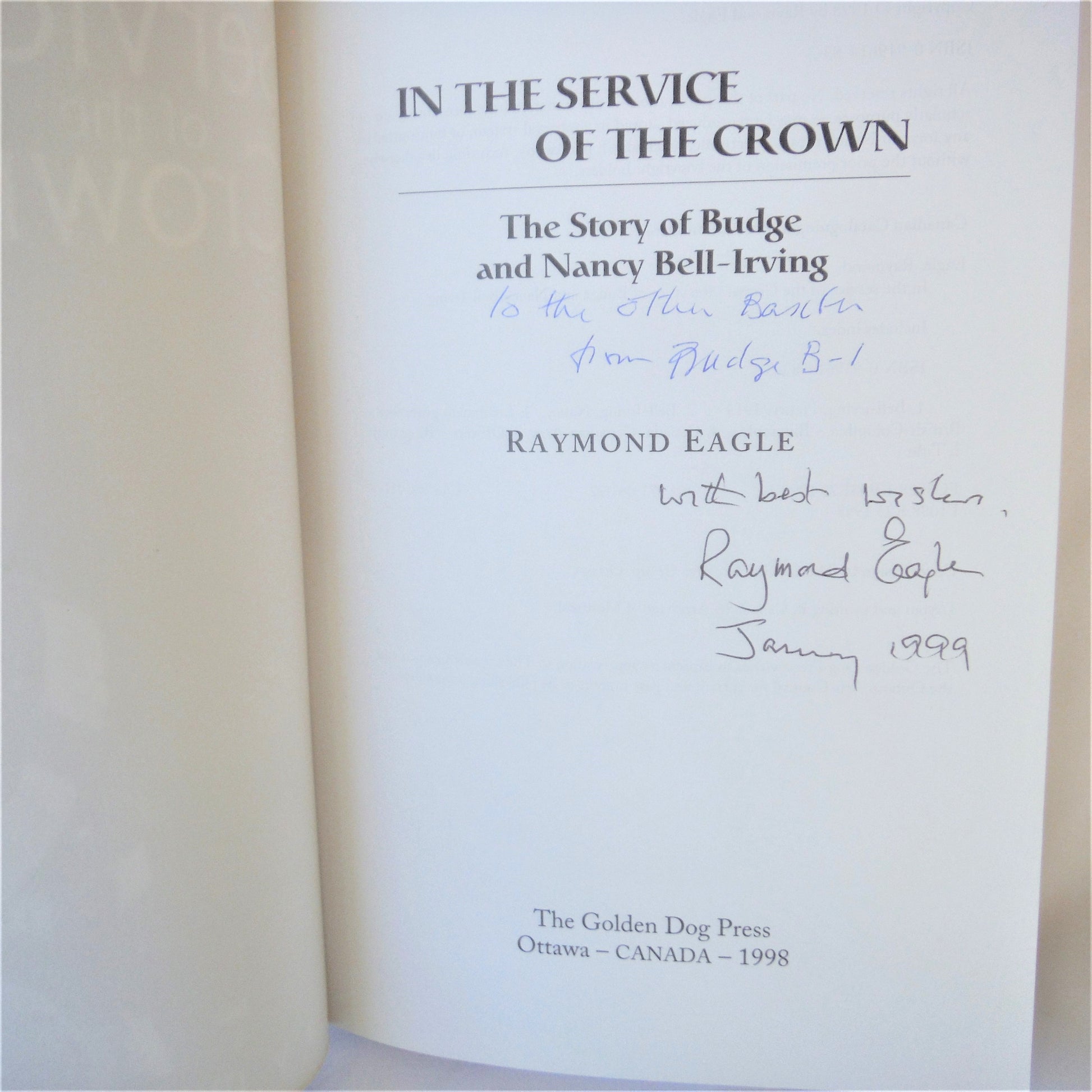 IN THE SERVICE OF THE CROWN, The Story of Budge and Nancy Bell-Irving, by Raymond Eagle (1st Ed. SIGNED)