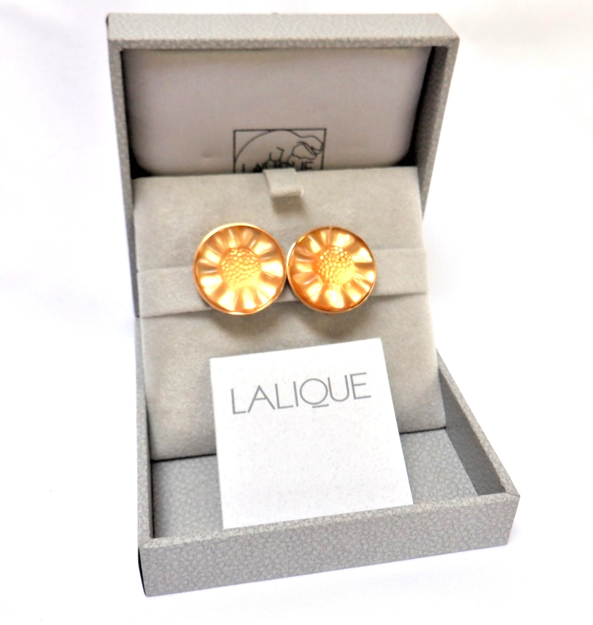 LALIQUE Opal Crystal MUGUET Series Clip-On Gold-Plated Earrings, Original Box & Certificate