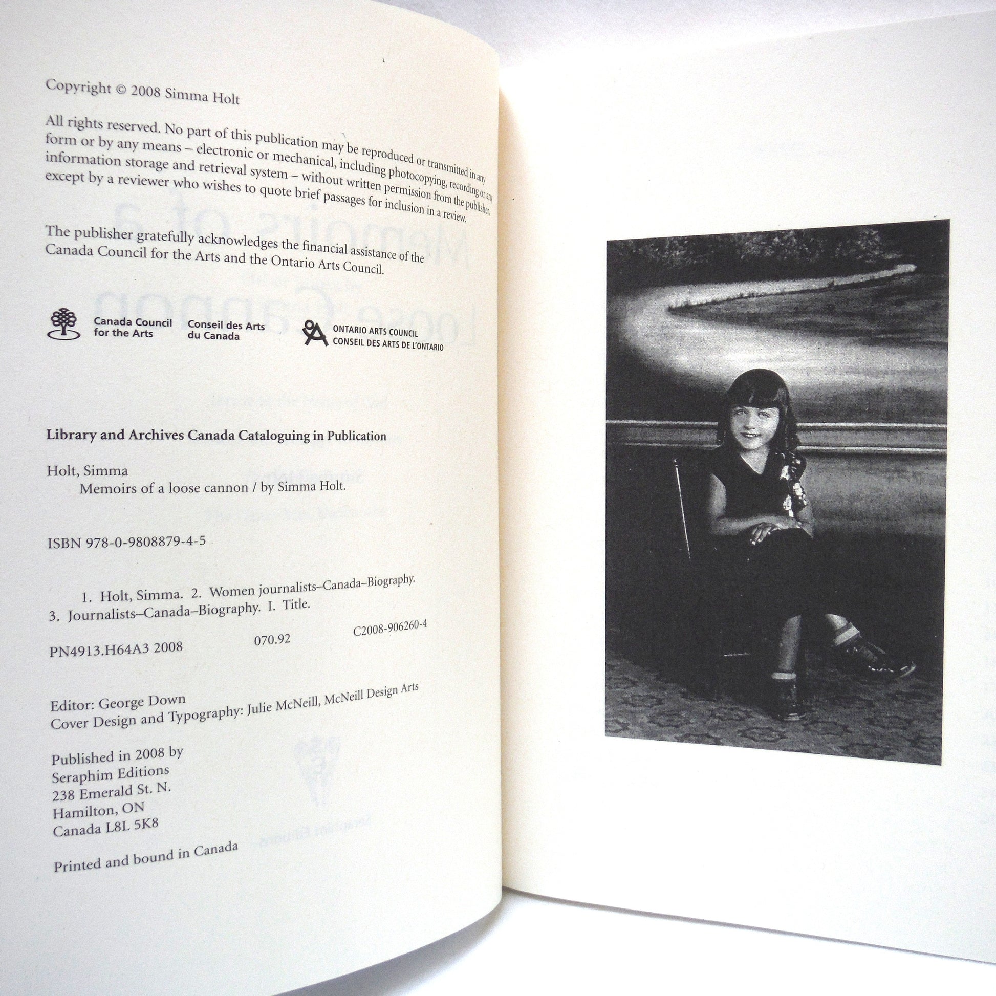 MEMOIRS OF A LOOSE CANNON, by Simma Holt, recalls growing up in Alberta, her career as a journalist spanning over fifty years, and her stories as a Member of Parliament in the Trudeau government on the National Parole Board and as a political advisor on Canada-US relations.