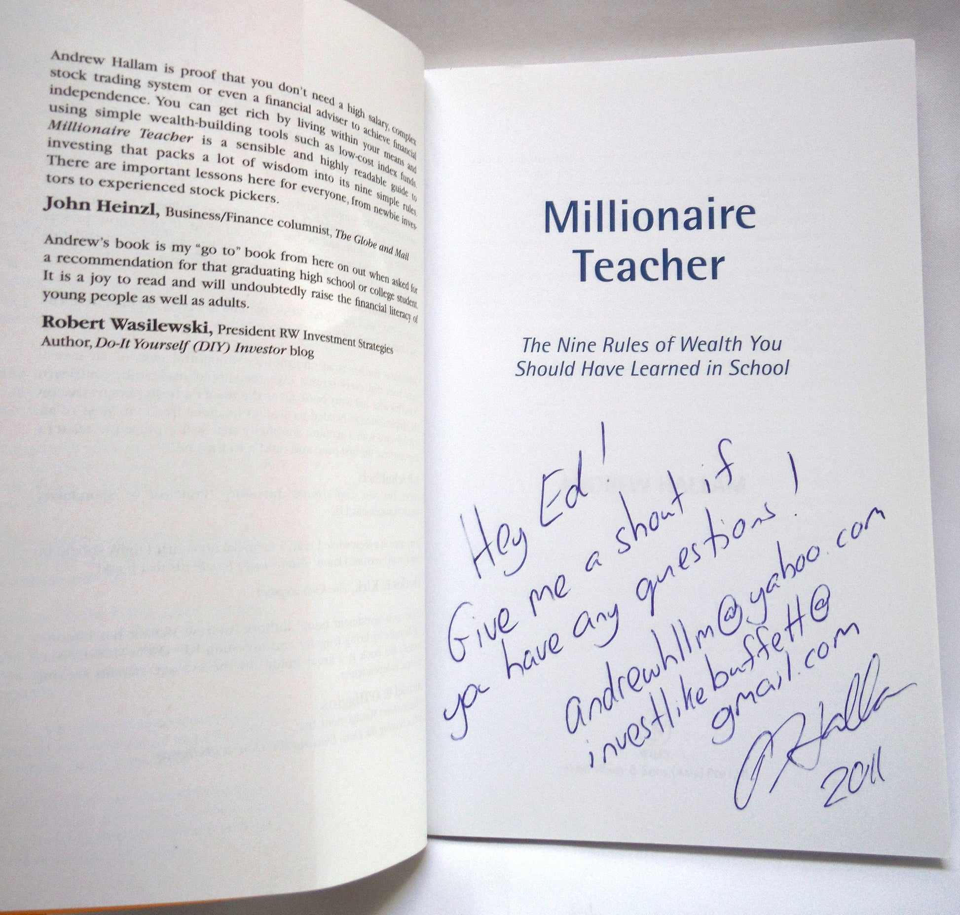 MILLIONAIRE TEACHER, The Nine Rules of Wealth You Should Have Learned in School, by Andrew Hallam (1st Ed. SIGNED)