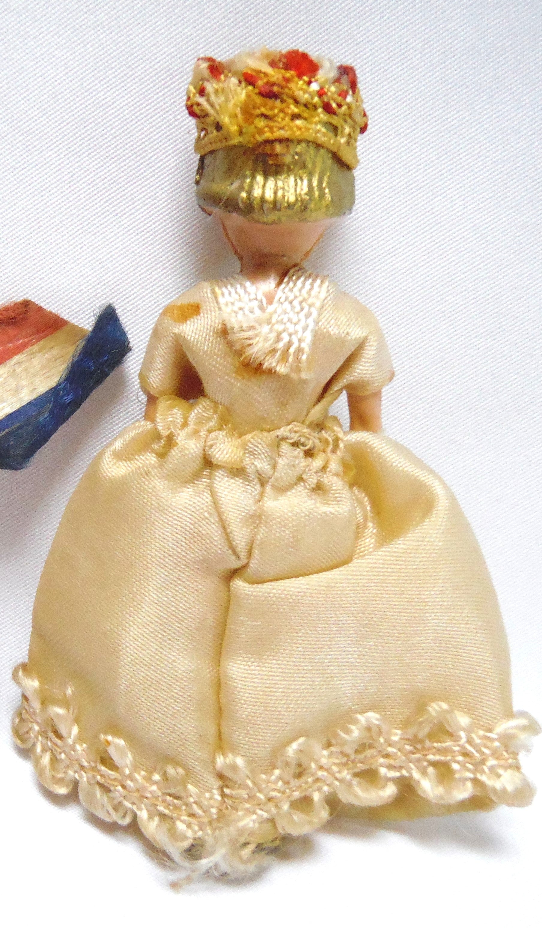 Miniature QUEEN ELIZABETH II DOLL, with Gown & Crown, Vintage 1950's
