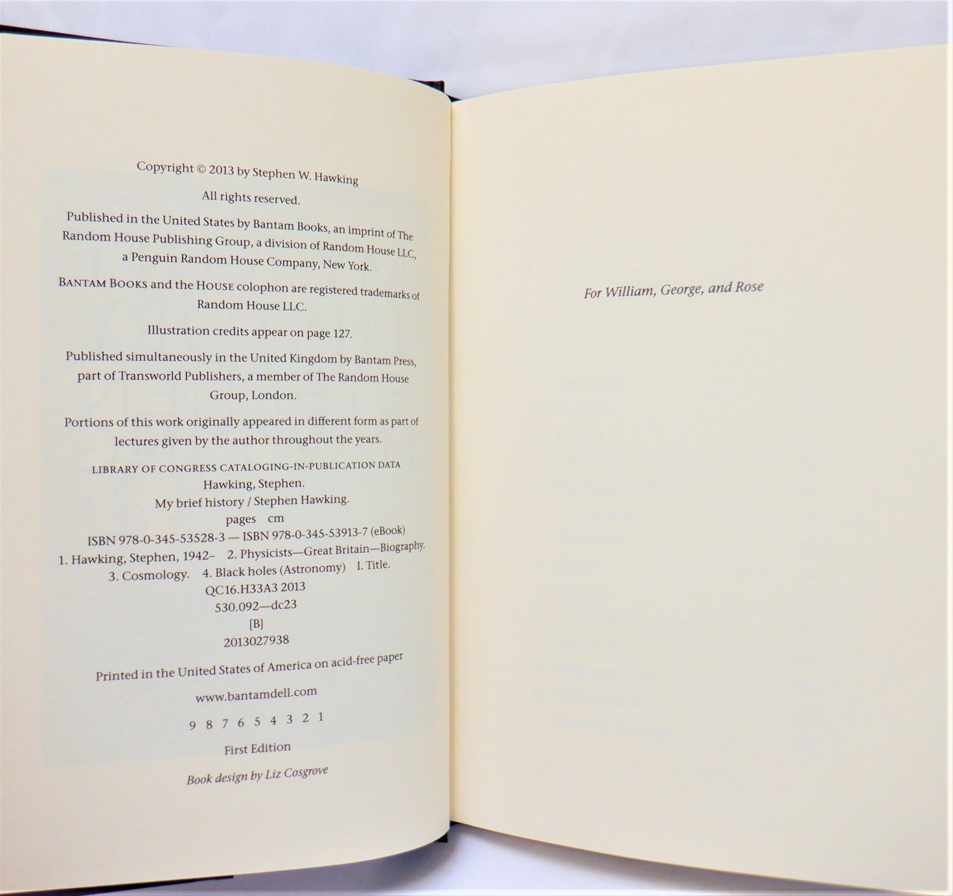 MY BRIEF HISTORY, A Quick Funny BIO by Stephen Hawking (2013 1st Ed.)