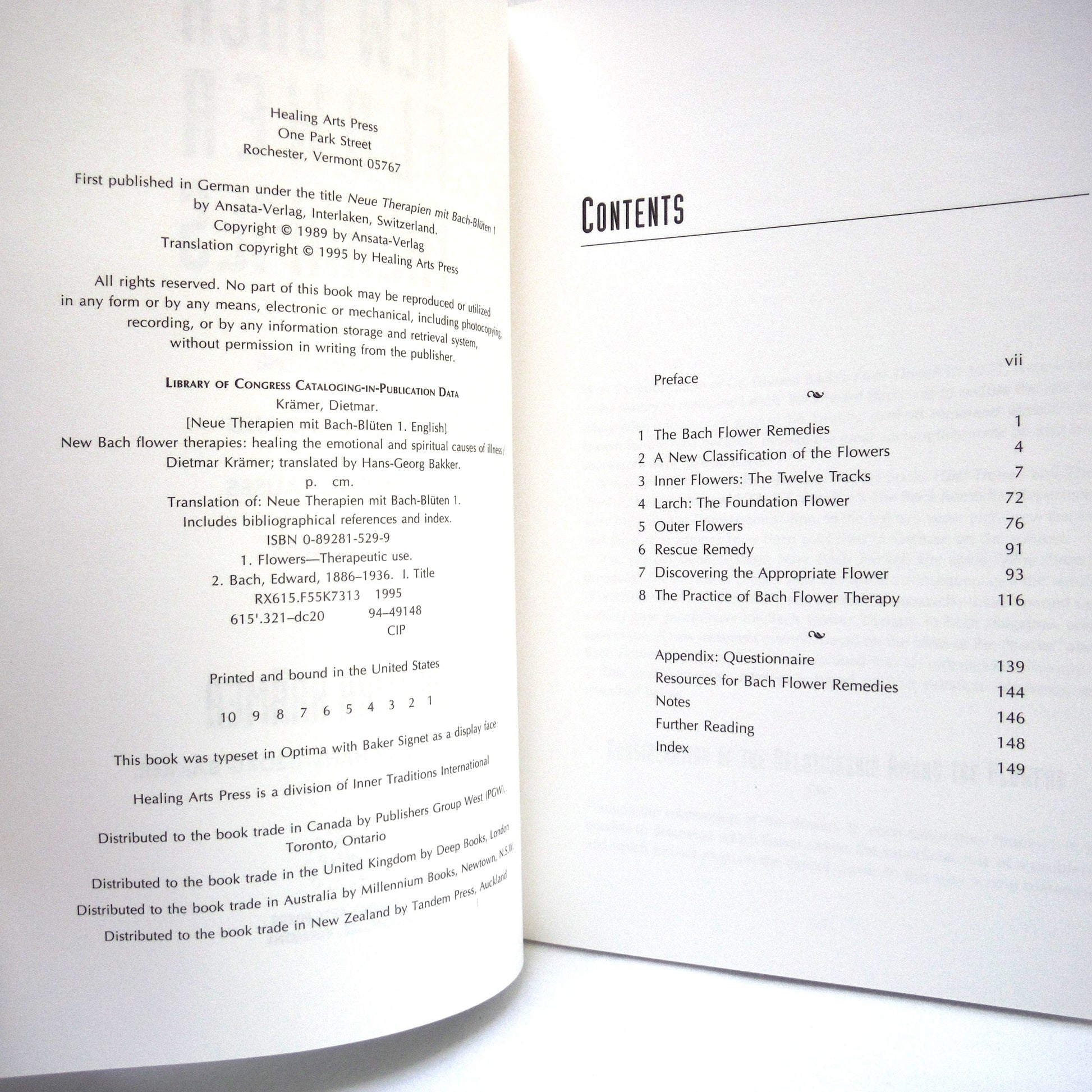 NEW BACH FLOWER THERAPIES, Healing the Emotional and Spiritual Causes of illness, by Dietmar Krämer, traces the relationships between the thirty-eight flowers in an unprecedented way. "Outer" flowers treat acute, more superficial problems, while "inner" flowers address the deep-rooted conflicts that are the source of surface symptoms.