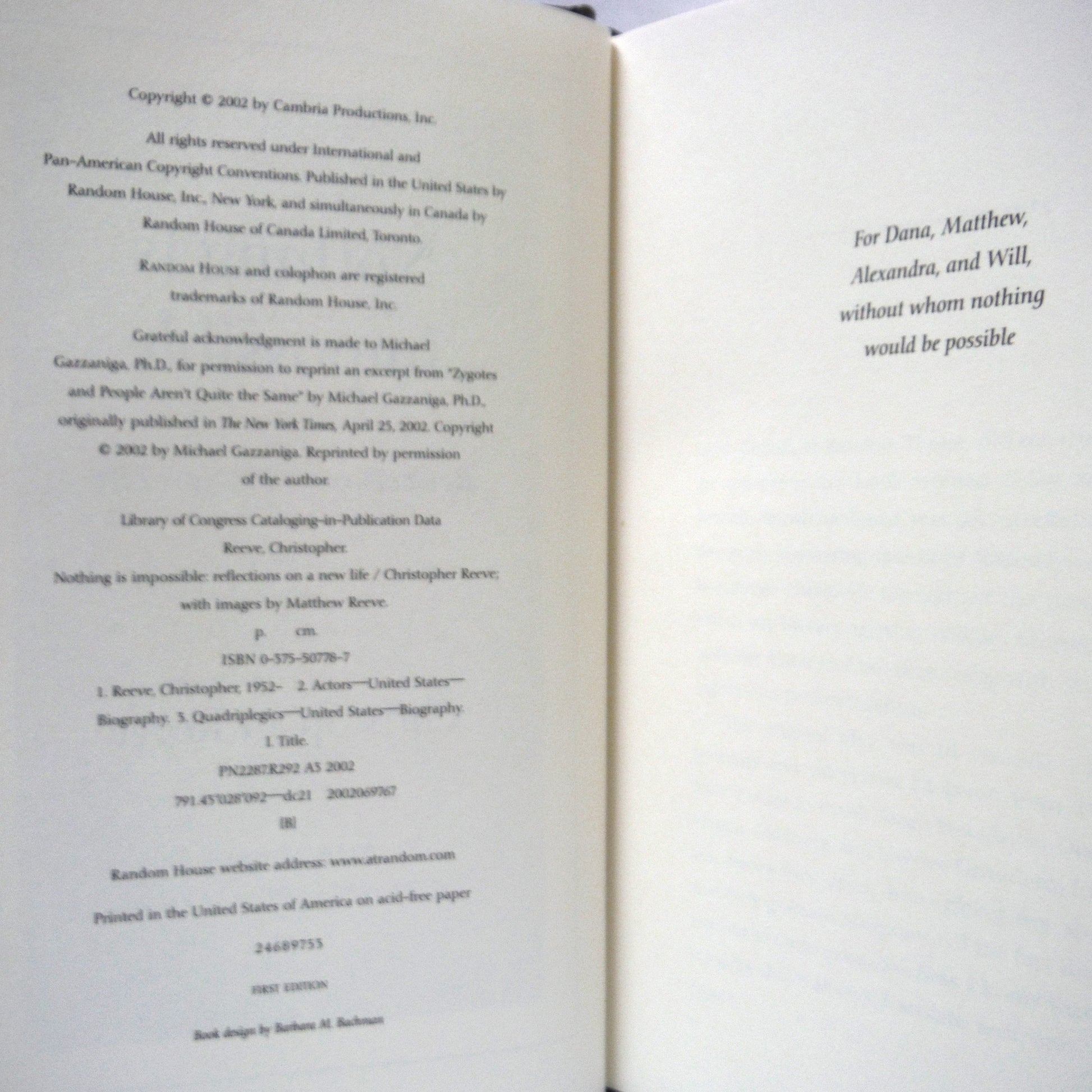 NOTHING IS IMPOSSIBLE, Reflections on a New Life, by Christopher Reeve (2002 1st Ed.)