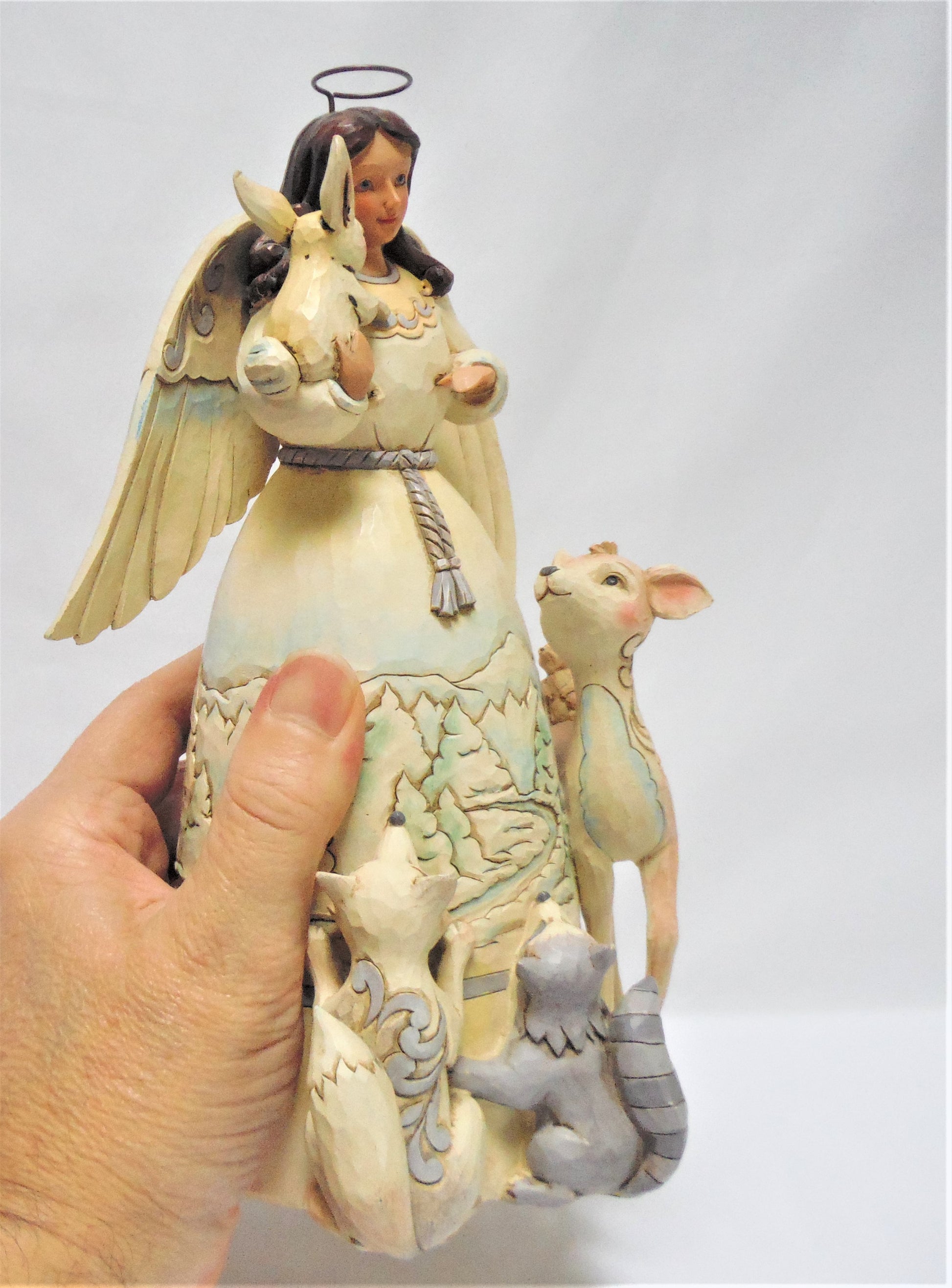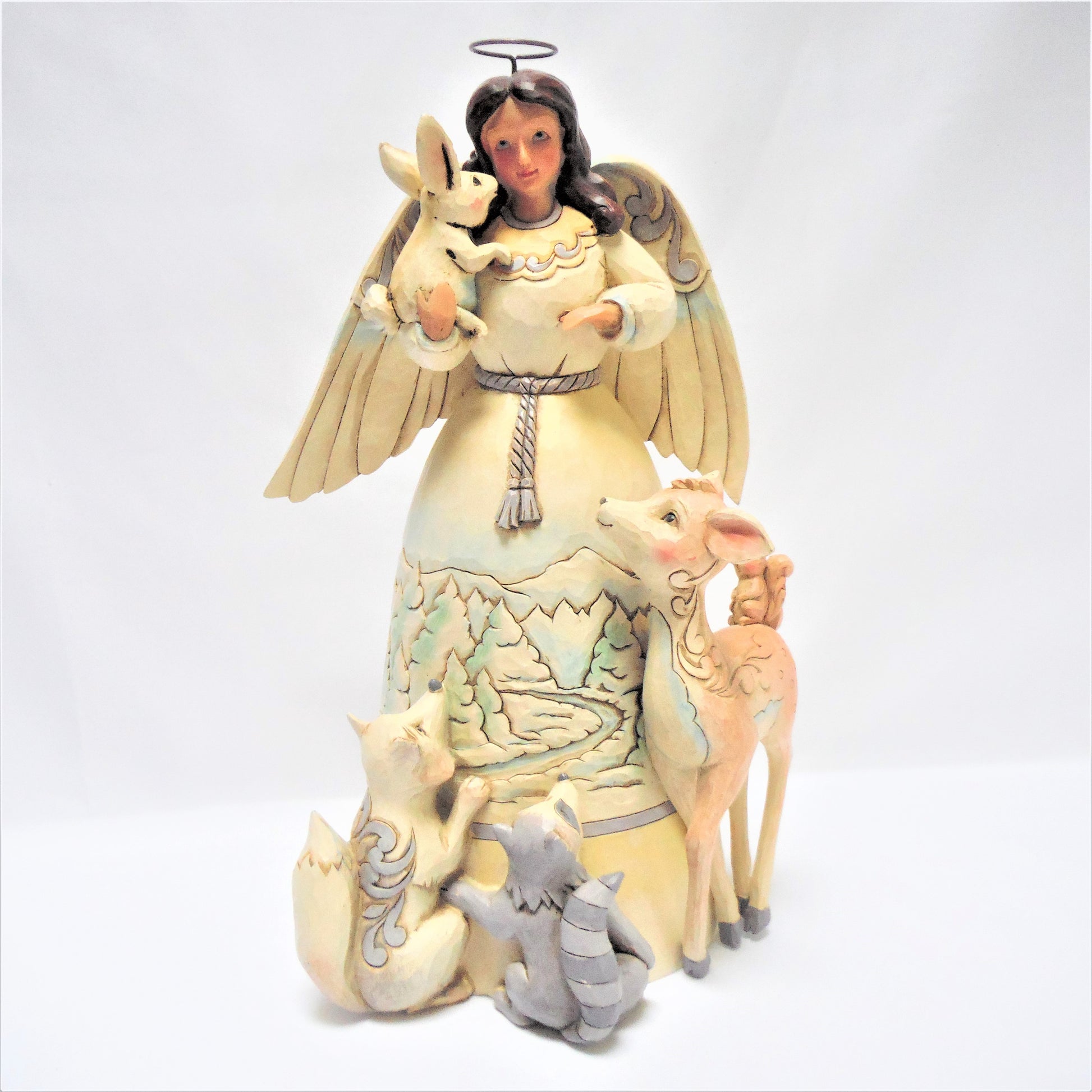 This is a Jim Shore "Peace to All" Heartwood Creeks Angel #4041084, beautiful carved Angel figure. She is surrounded by peaceful woodland animals. Stands almost 10 inches tall, and is in Perfect condition! No chips, cracks, marks, guaranteed!