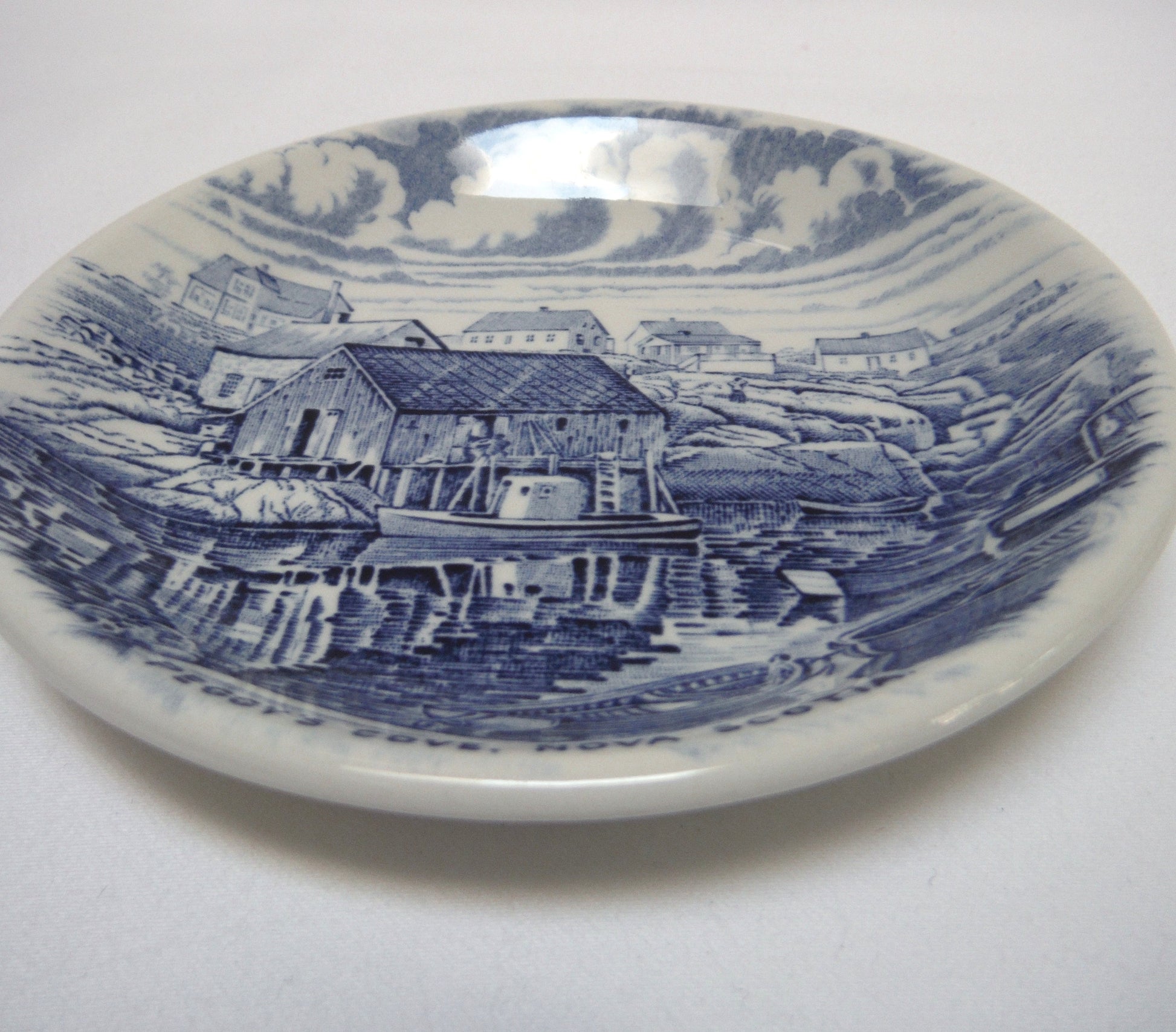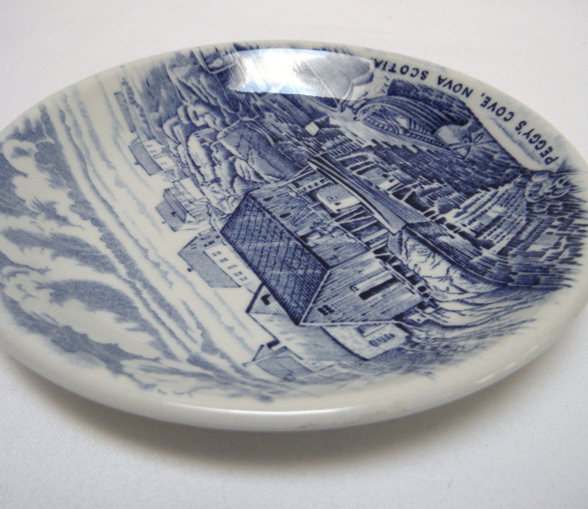PEGGY'S COVE, NOVA SCOTIA: Vintage Miniature Trinket Dish in the Atlantic Canada Collector's Series by Wood & Sons of England. Excellent condition. No scratches, vibrant blue colors, and a high-gloss finish. The back has all the required company markings. Made in England.